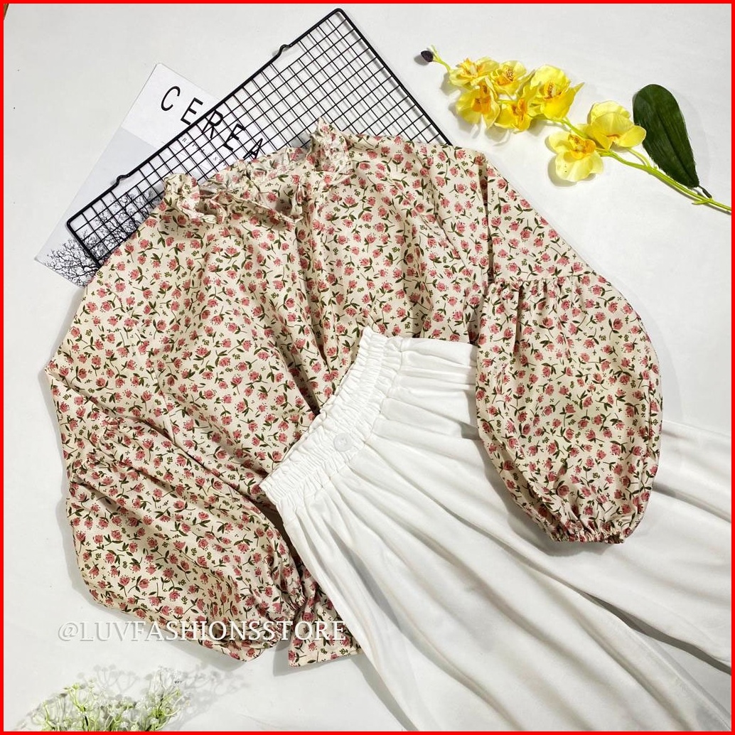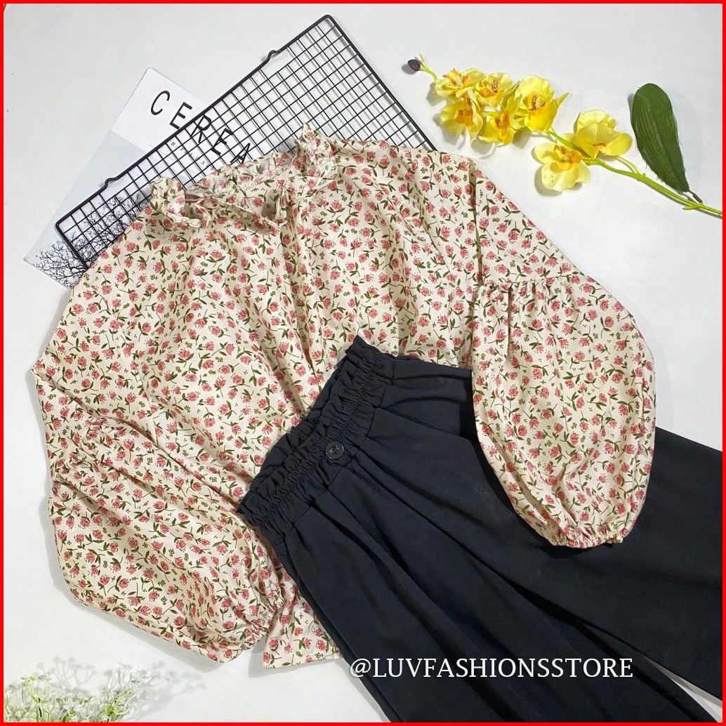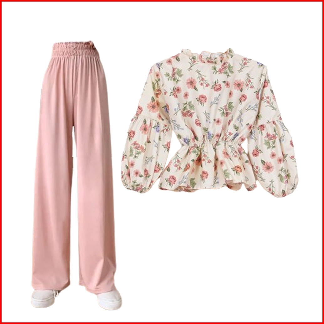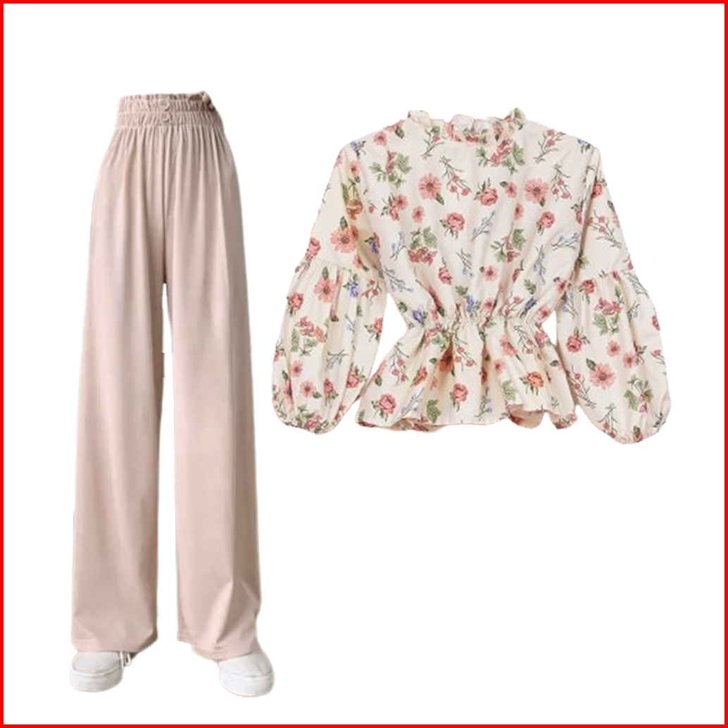 Il - Setelan Blouse Sanny Motif Floral Terbaru Set Kulot Kancing Crepe Atasan Blouse Wanita