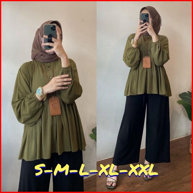 Obral Ngabisin Stok Raisha Blouse Crinkle Size S-m-l-xl-xxl