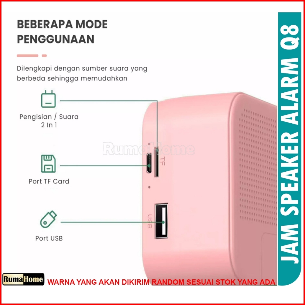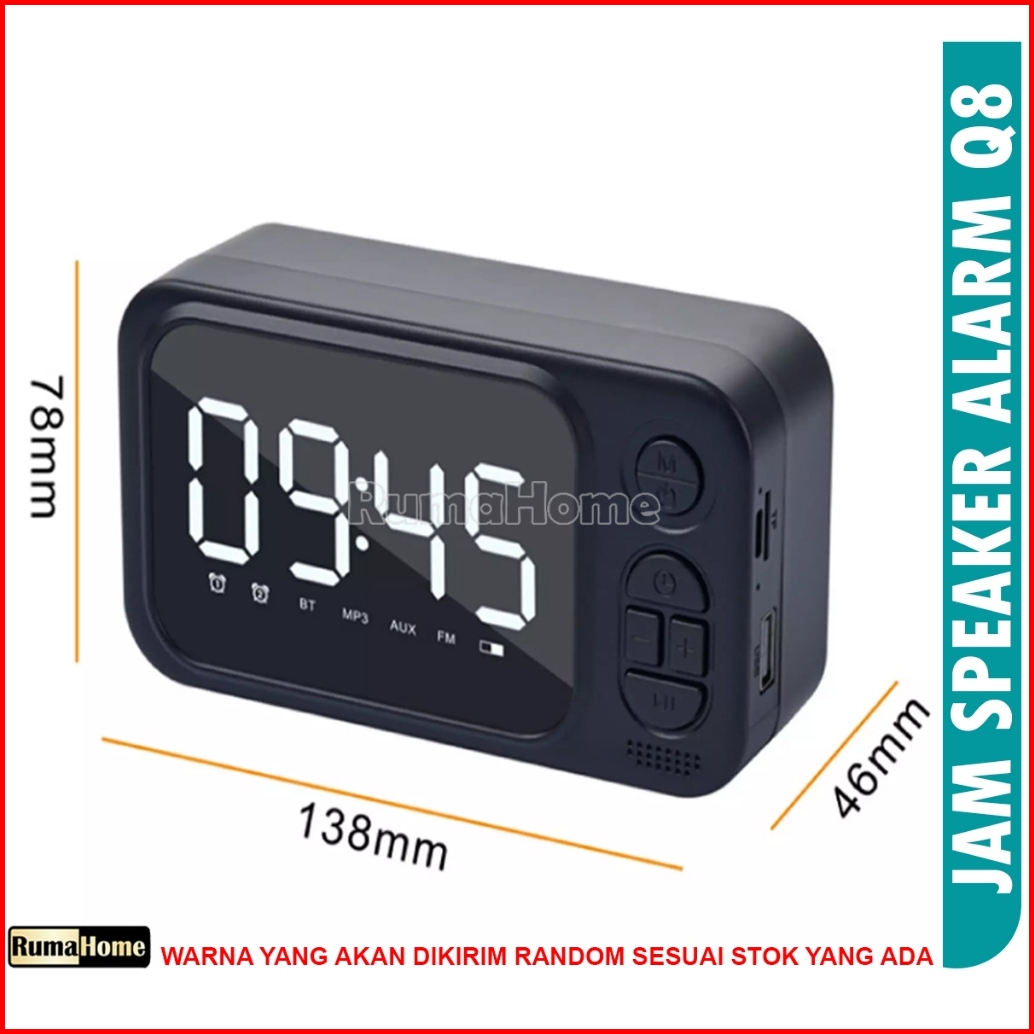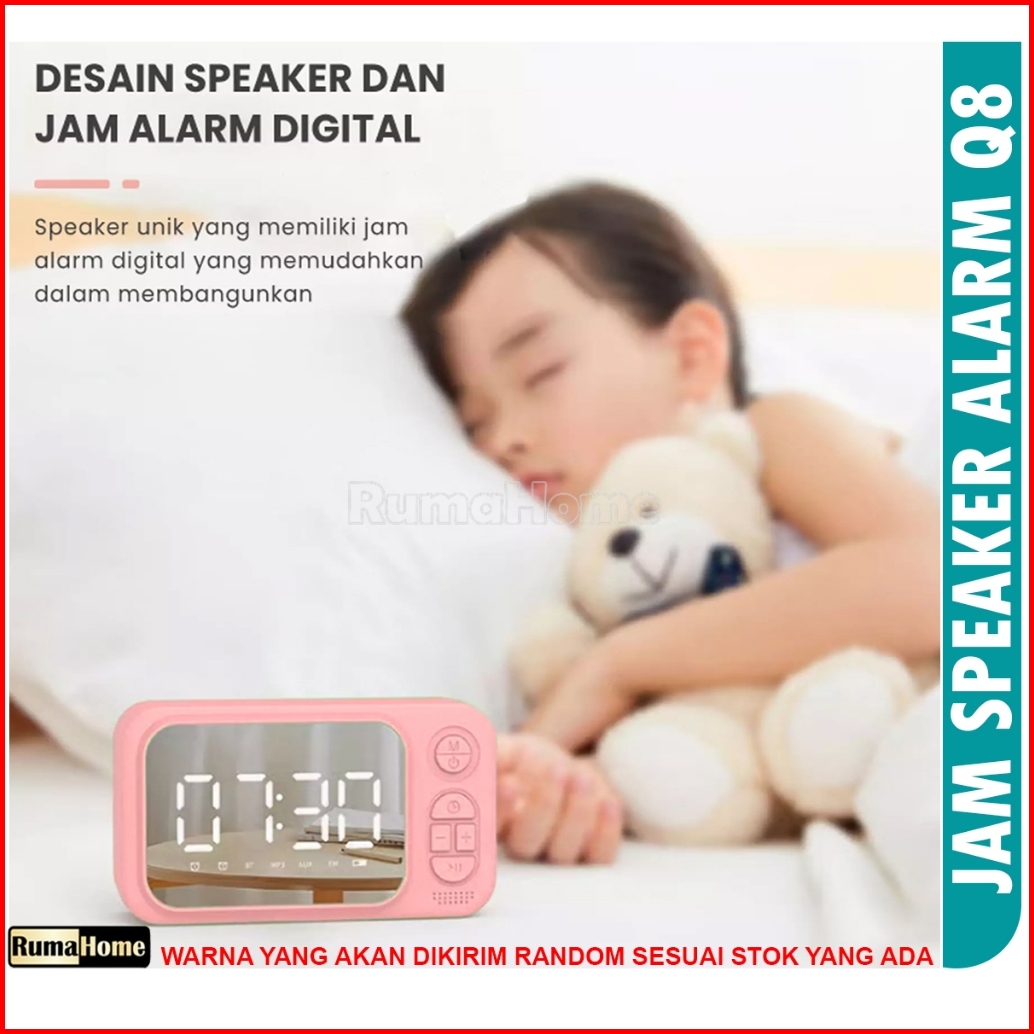 Speaker Alarm Jam Alarm Q8 Pintar Dengan Bluetooth Speaker Mirror Display
