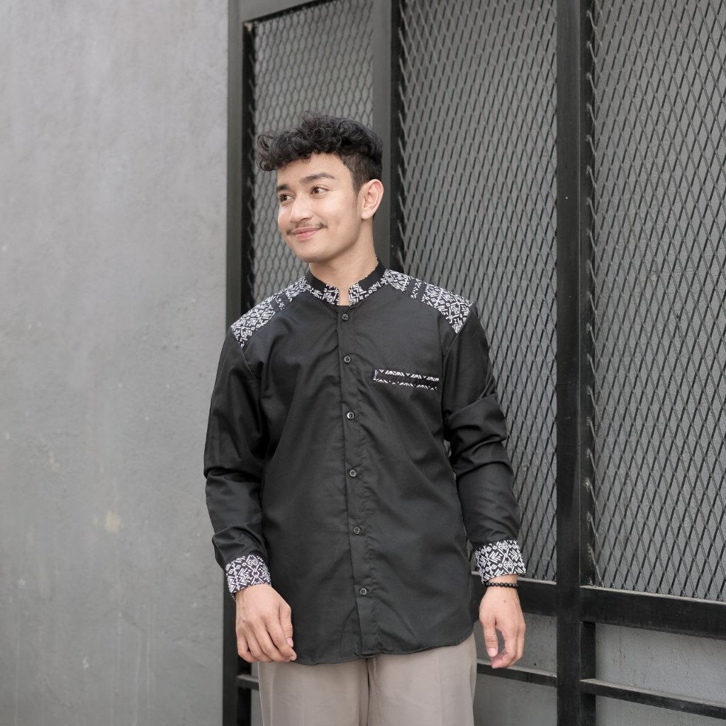 BAJU KOKO PRIA LENGAN PANJANG ORIGINAL EL RUMI KOMBINASI BATIK MOTIF ADIDIS