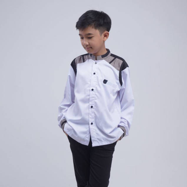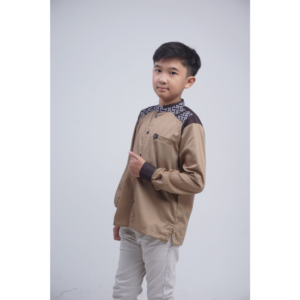 BAJU KOKO ANAK MUSLIM PRIA LENGAN PANJANG UMUR 7-15 TAHUN ORIGINAL ELRUMI MOTIF TANDUK-RUSA BAHAN ADEM