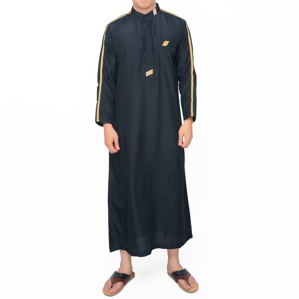 JUBAH PRIA GAMIS PRIA DEWASA HITAM LIS COKLAT