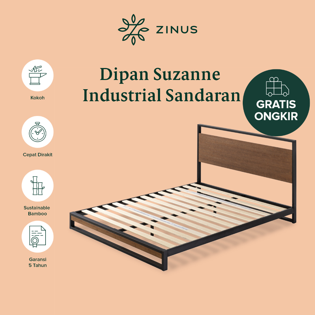TEMPAT TIDUR DIPAN SANDARAN ZINUS SUZANNE / RANJANG BESI DAN KAYU / DESIGN INDUSTRIAL / DIY / BED IN A BOX