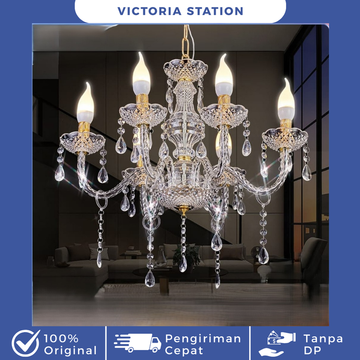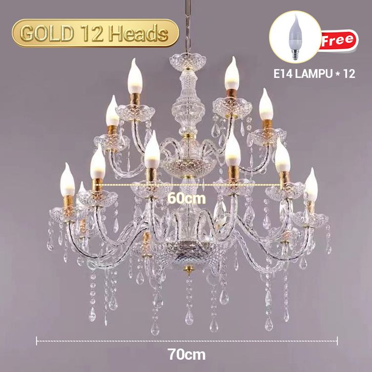 ✨Termurah ✨E.Home Lampu Gantung Kristal Akrilik Isi 6/8/8+4 Bola Lampu Dekorasi Termasuk Bohlam Lampu Gantung