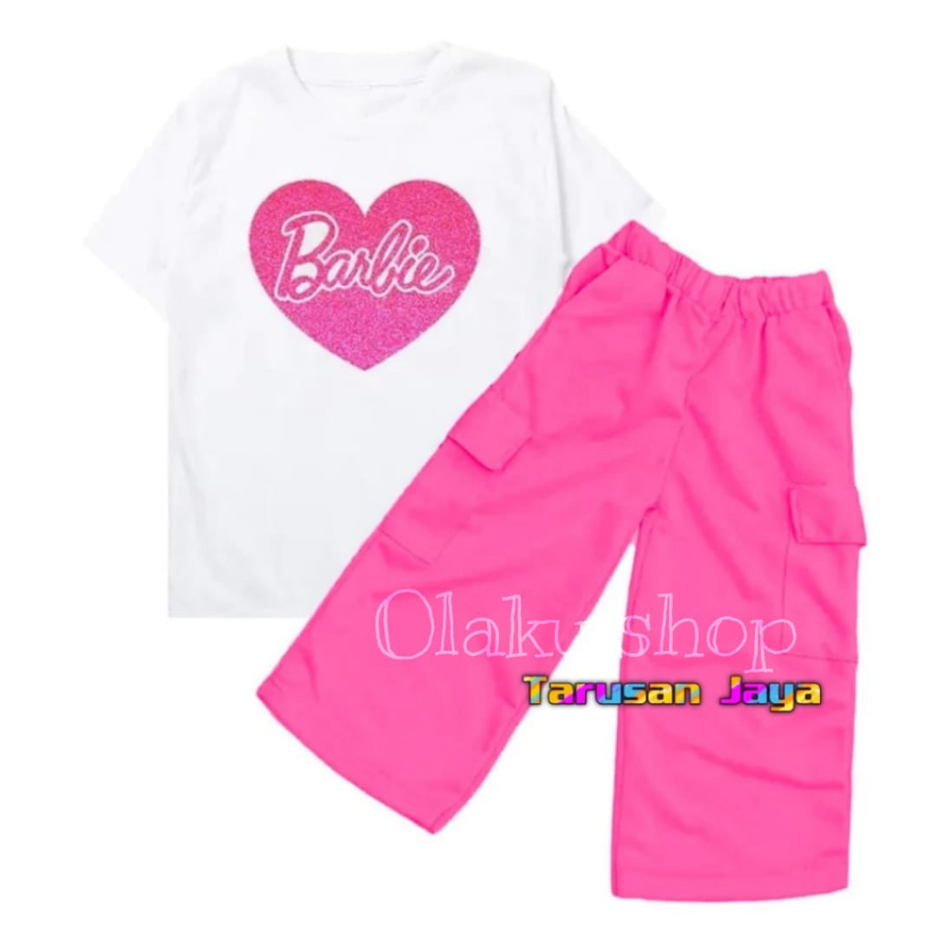 SETELAN ANAK KAOS BARBIE DENGAN CELANA KULOT KARGO TERBARU / SETELAN BARBIE ANAK PEREMPUAN USIA 1-12 TAHUN