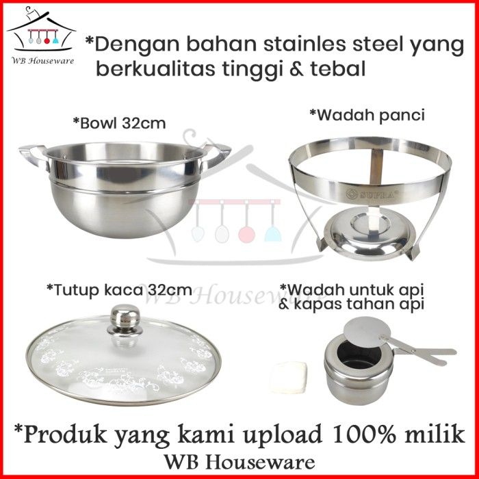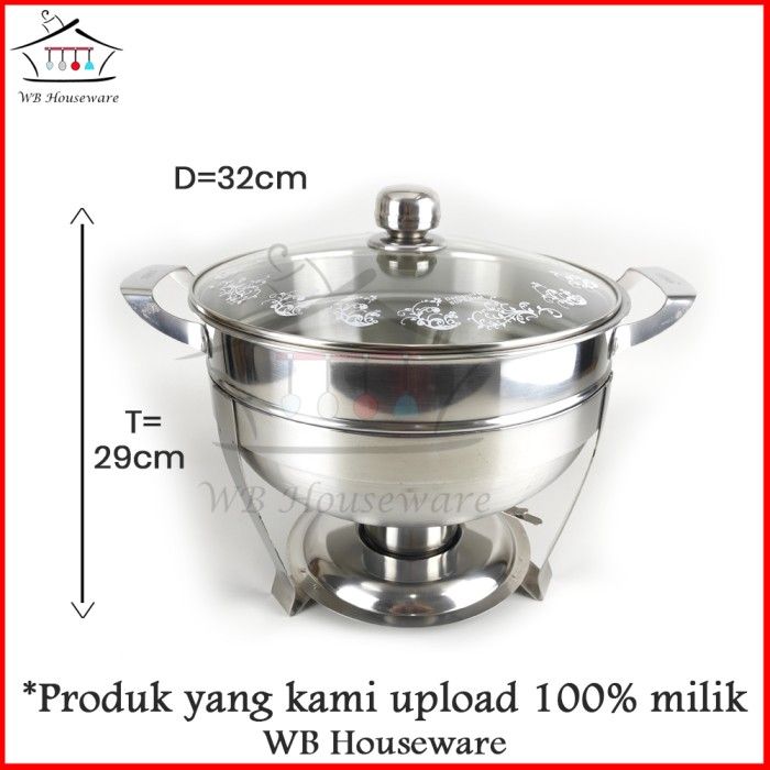 SUPRA Deep Soup Bowl 32cm tutup kaca panci Prasmanan Bulat food warmer