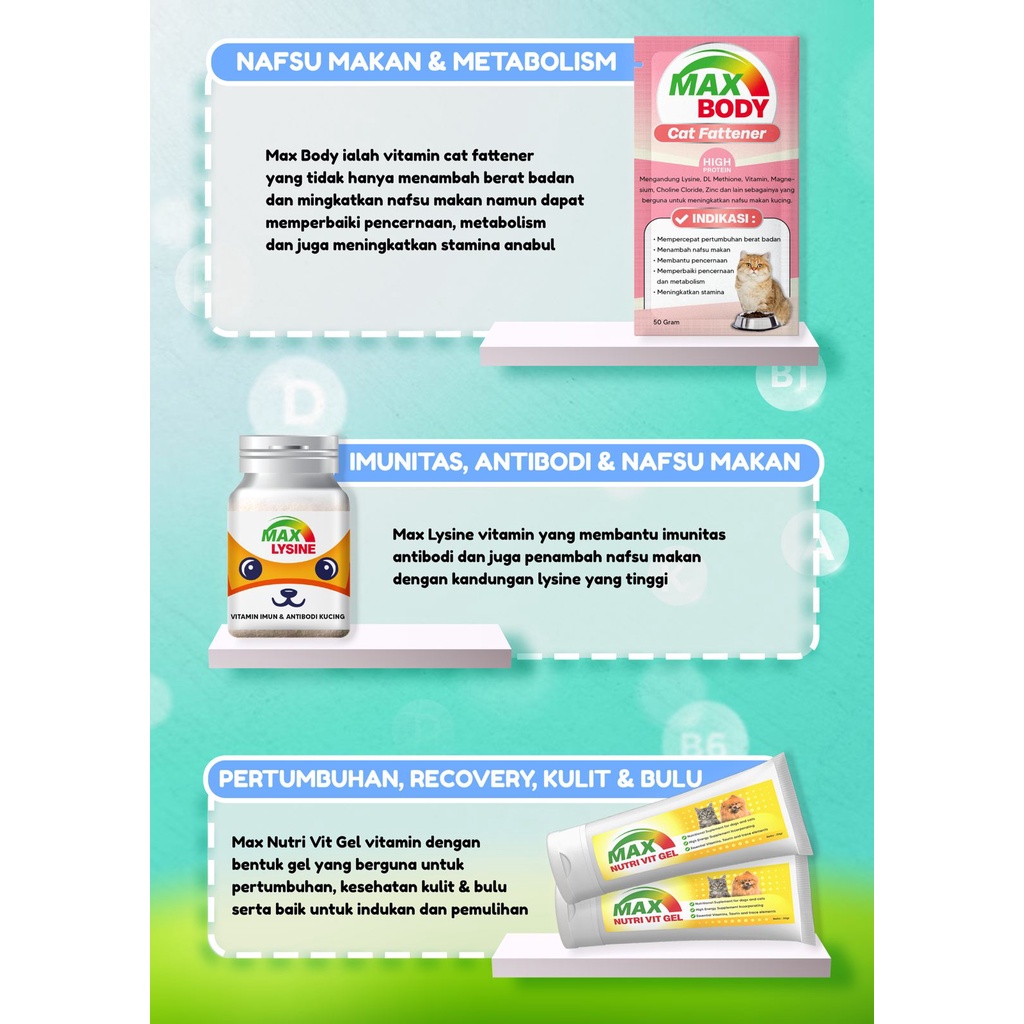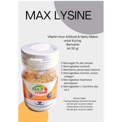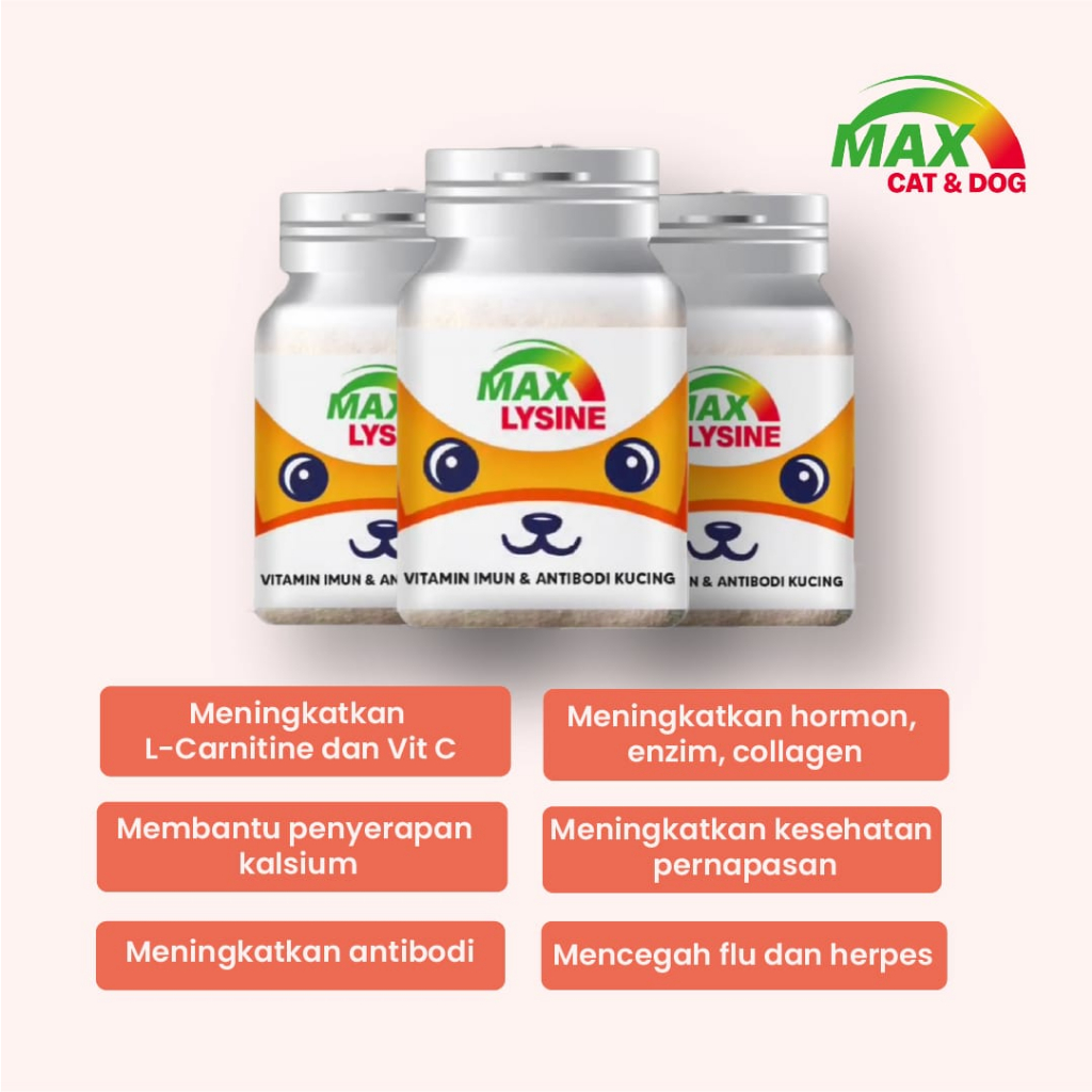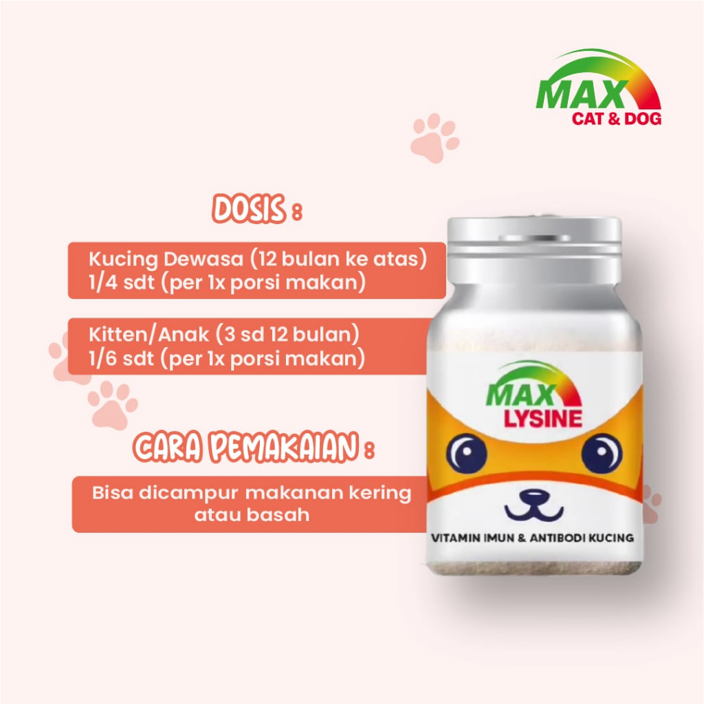 Max Lysine Vitamin Imun, Anti Bodi & Nafsu Makan Kucing 50gr