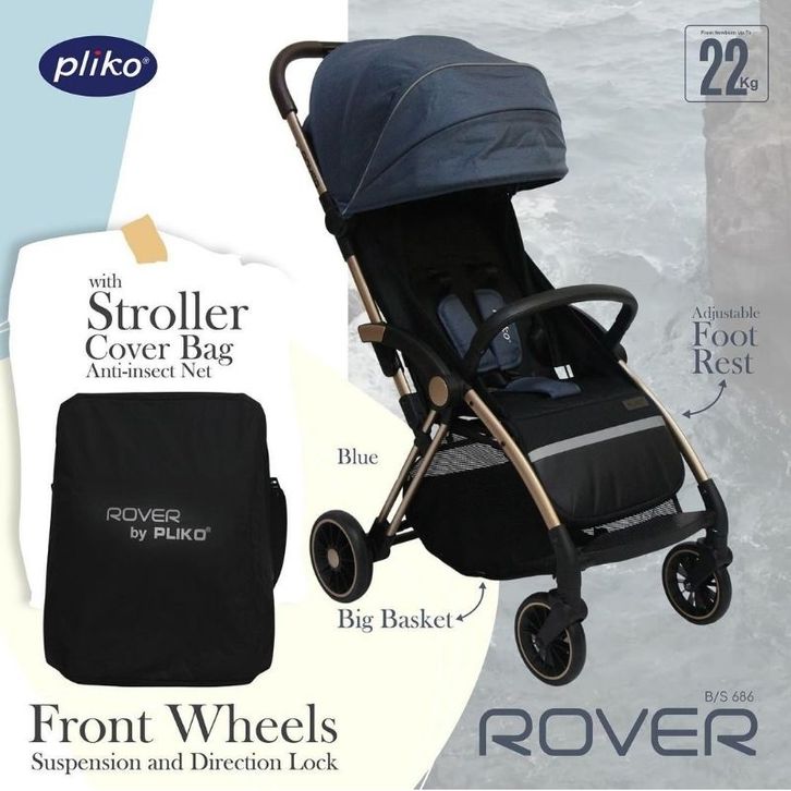 STROLLER LIPAT BABY PLIKO ROVER 686 KERETA DORONG BAYI ONE HAND FOLD SYSTEM MULTIPOSISI STROLER TROLI ANAK MURAH
