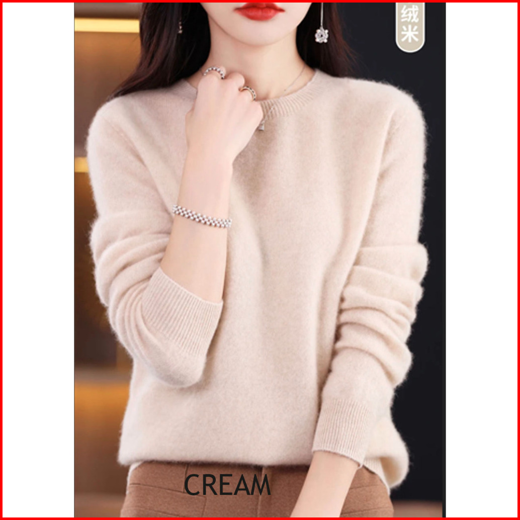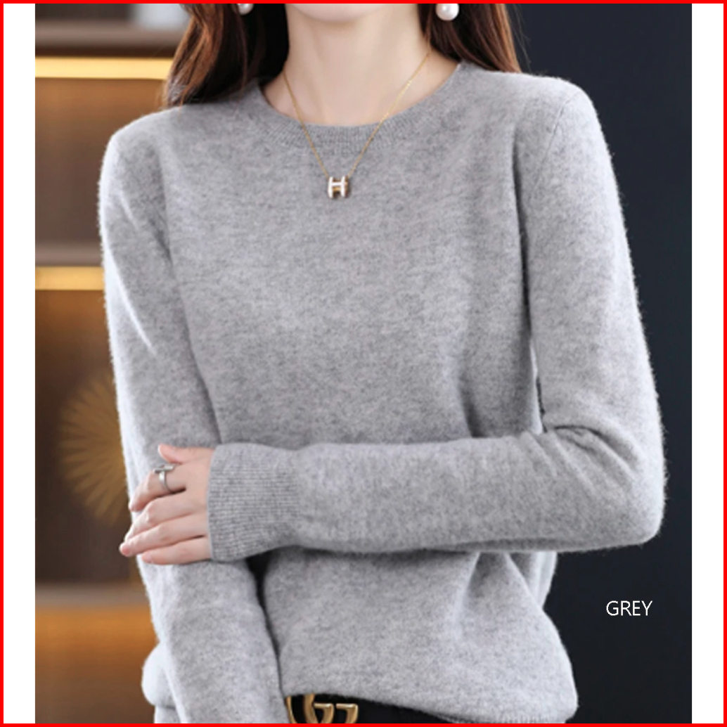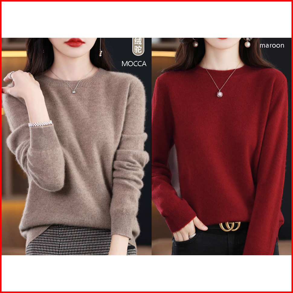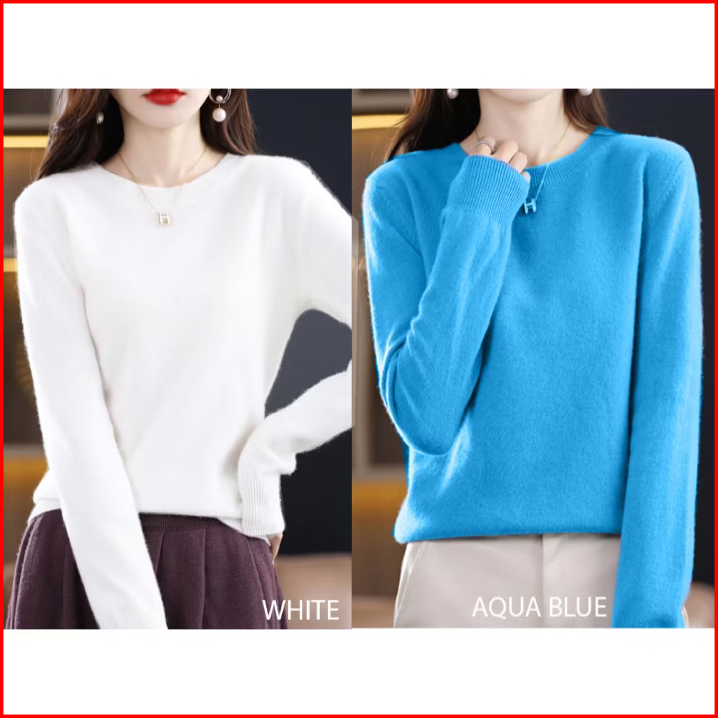 B191 O Neck Knit Sweater Atasan Rajut Wanita