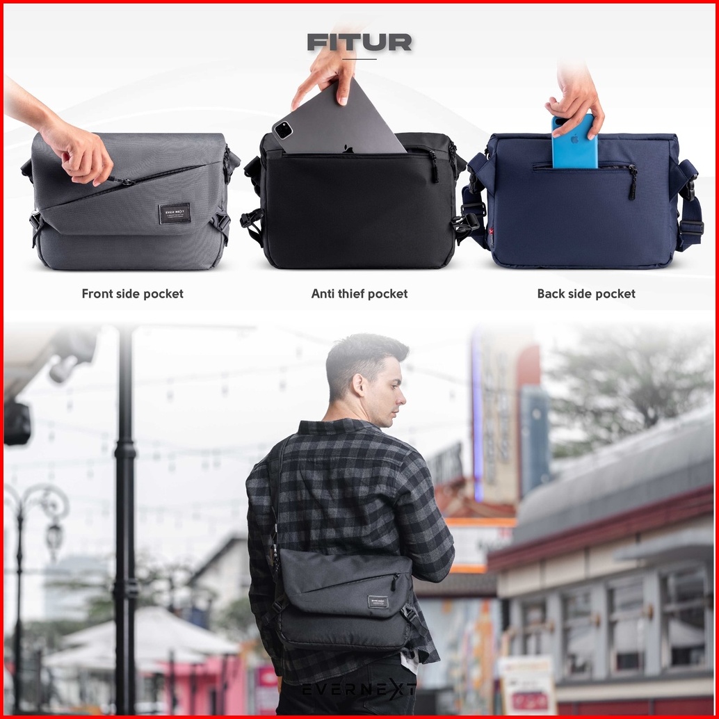 Evernext - Messenger Bag Pria Tas Selempang Pria Tas Selempang Laptop 13 Sling Bag Pria Tas Laptop Pria