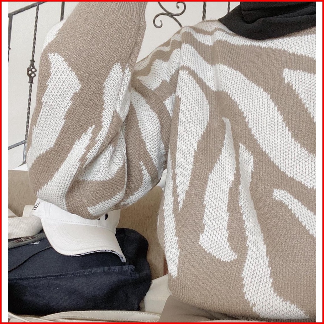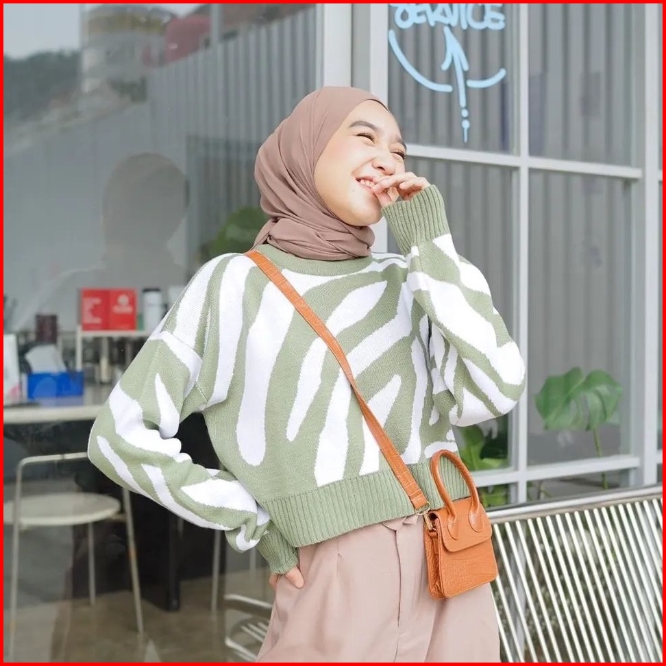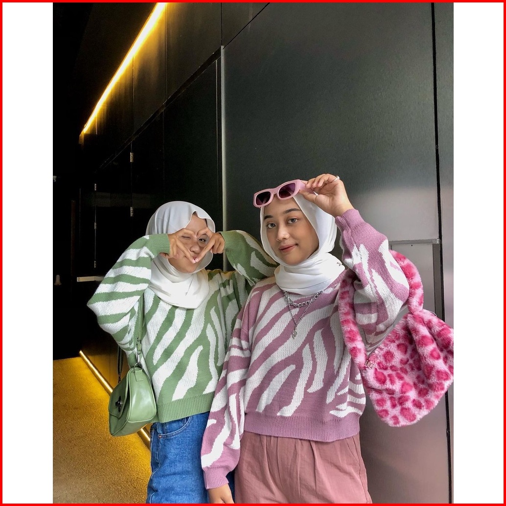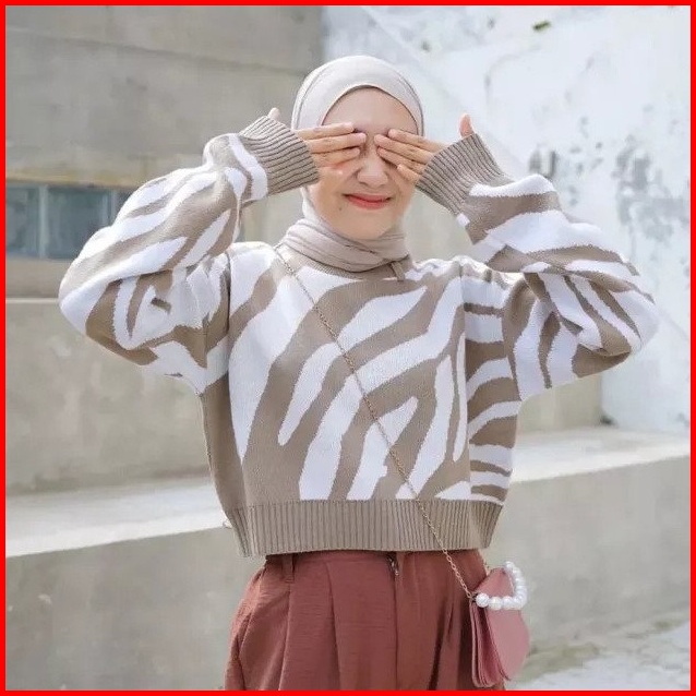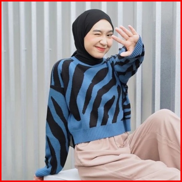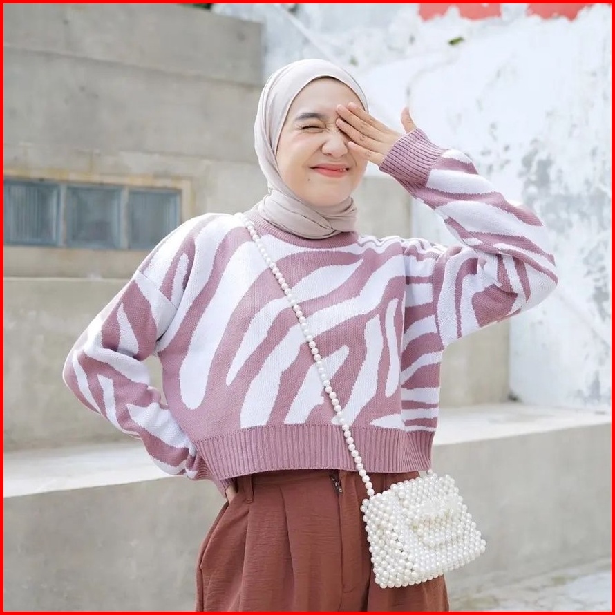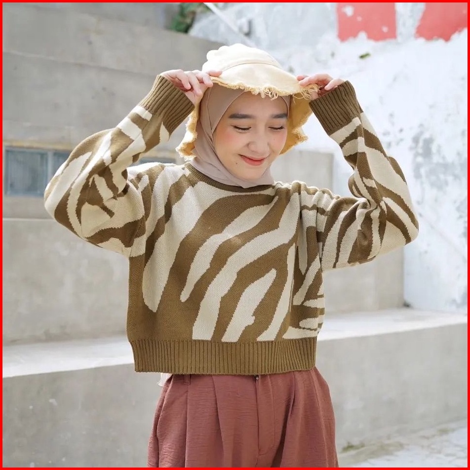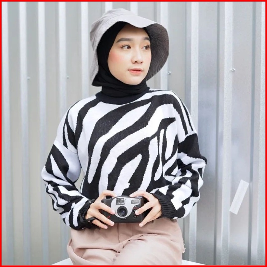 Arabelle Sweater Rajut Wanita Zebra Crop Sweater Blouse Motif Zebra Atasan Rajut Oversize Wanita