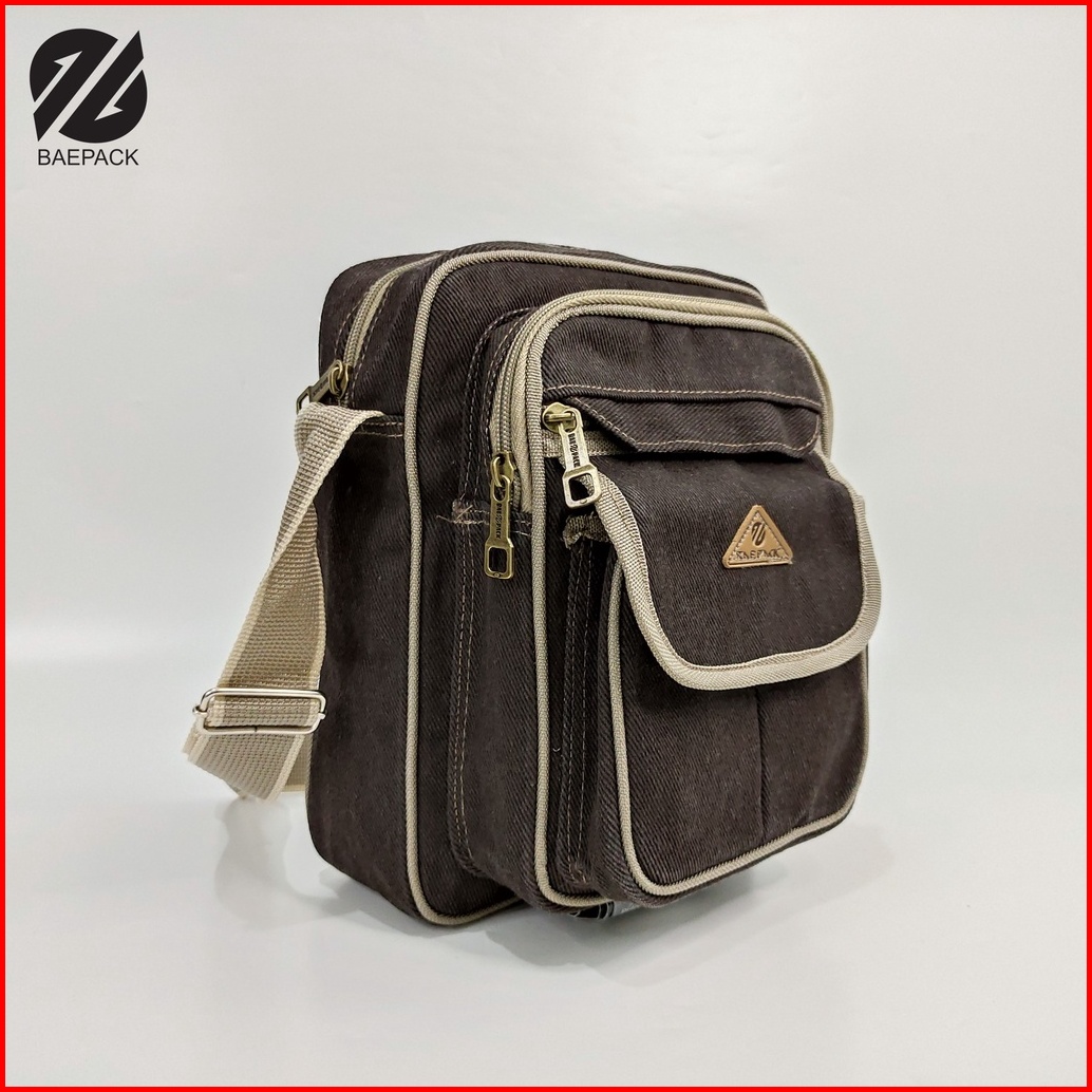 Baepack Tas Selempang Kanvas Pria Xenof Cream Original Tas Bahu Canvas Cowok Tas Selempang Premium Produsen Bandung