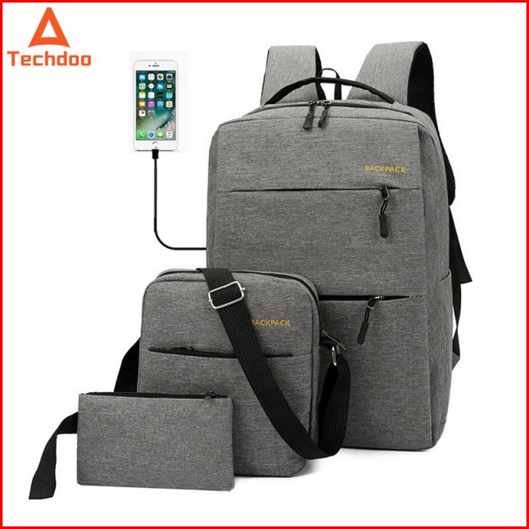 Buy 1 Get 2 Techdoo Tas Ransel Set Tas Pria Bag Sekolah Usb Charger Waterproof Backpack Ready Stock Tr801
