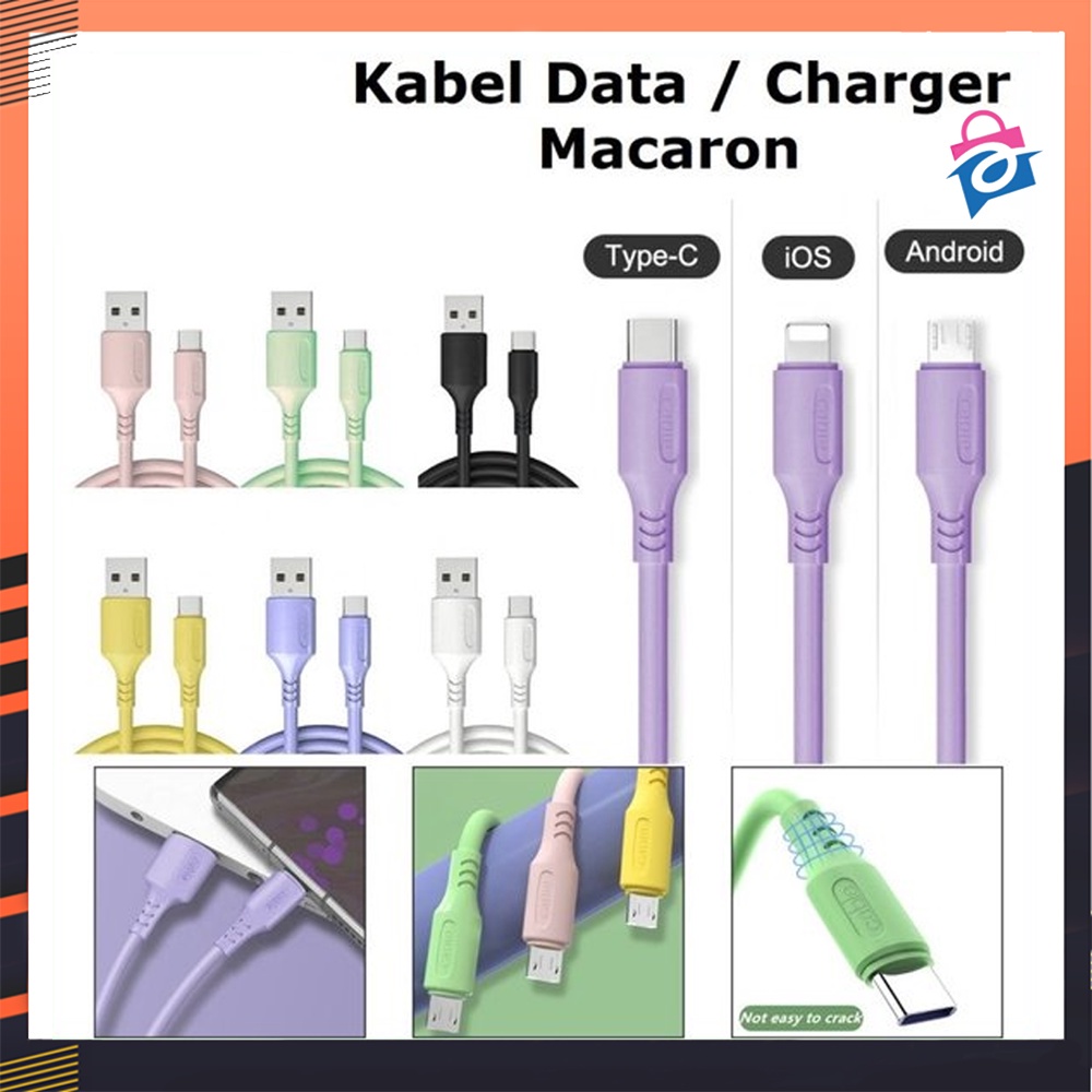AKACC KABEL DATA MACARON 2A FAST CHARGING USB V8/MICRO / TYPE C / KABEL WARNA WARNI 100CM