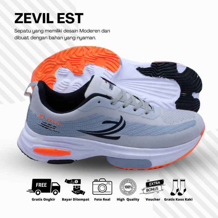 Sepatu Running ZEVIL Olahraga Pria Wanita UNISEX Sepatu Sneakers Kets Jogging Cowok Sepatu Lari TERMASUK BOX+KAOS KAKI