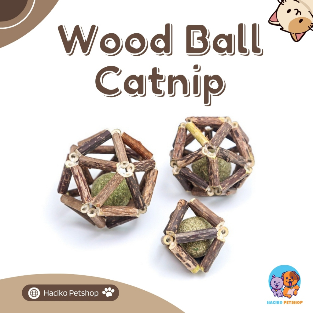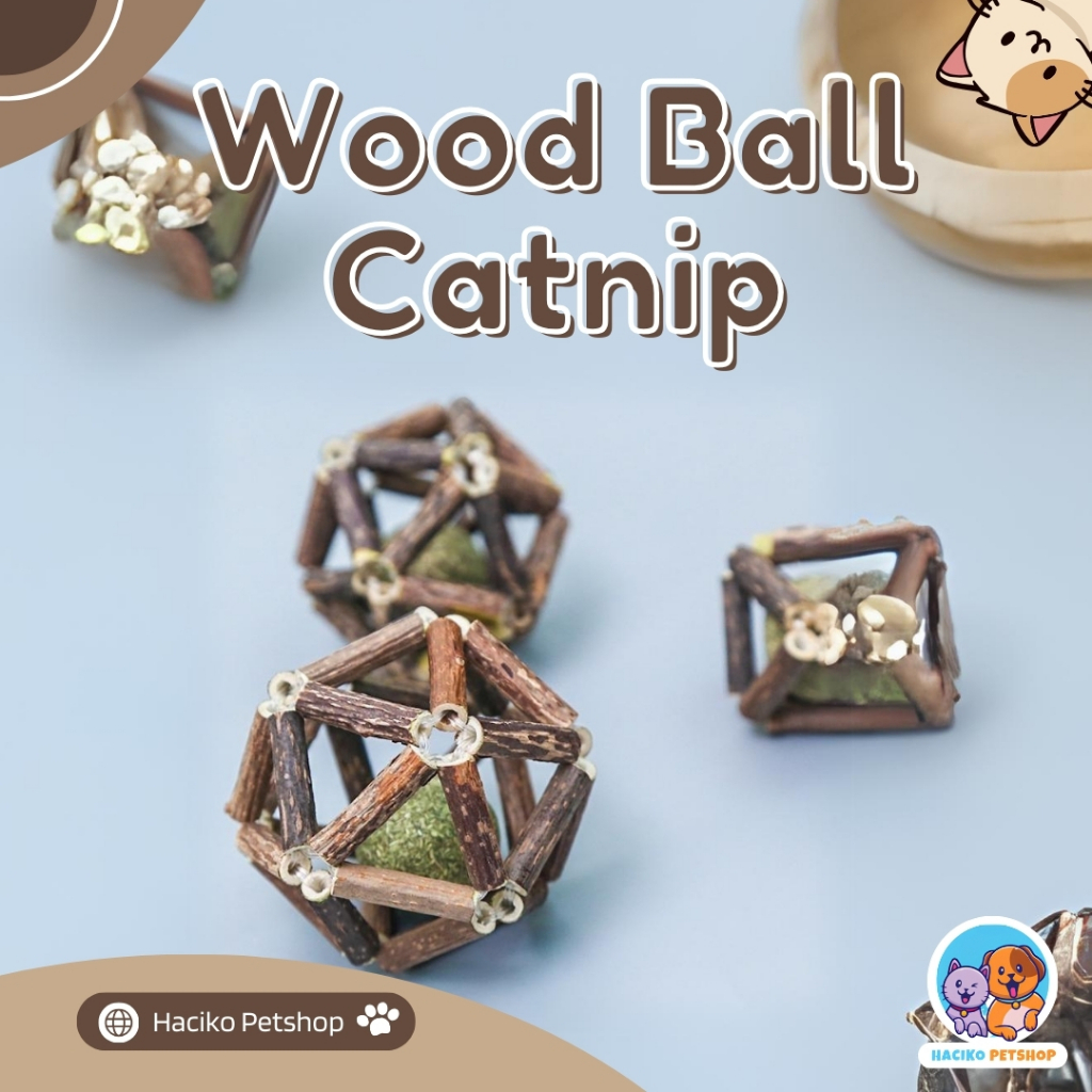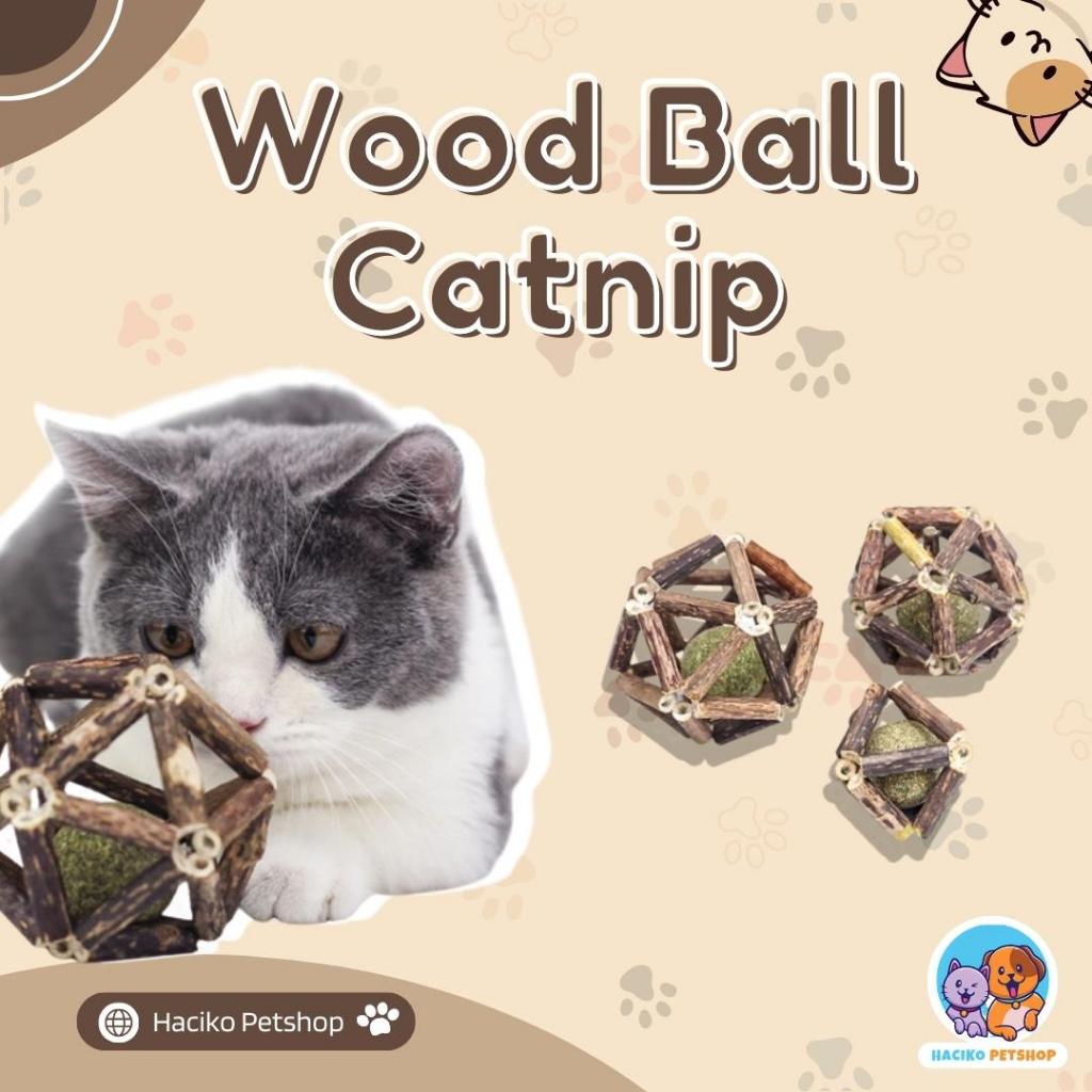 Catnip Kucing Ball Wood Mainan Interaktif Tahan Gigitan Halus Membersihkan Mulut Dan Bulu Yang Masuk Ke Perut