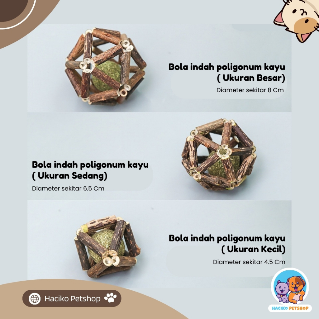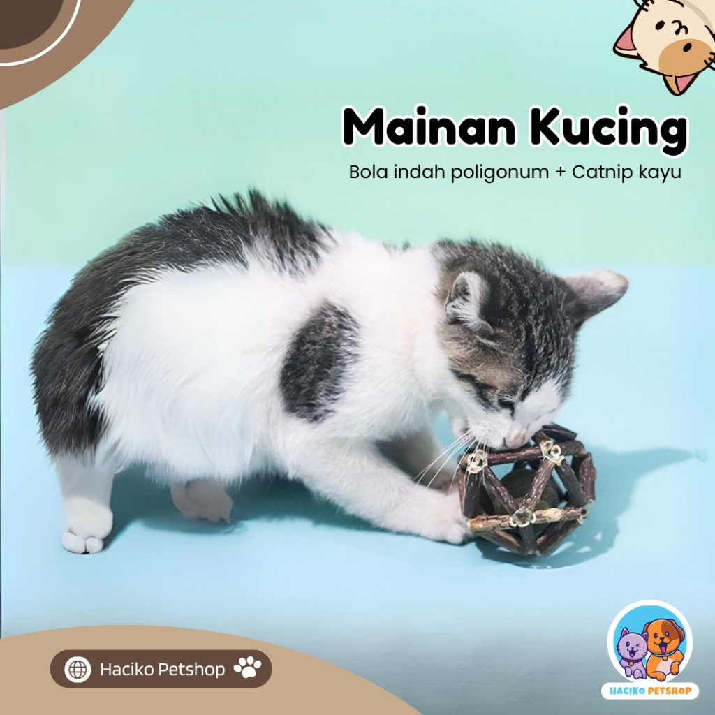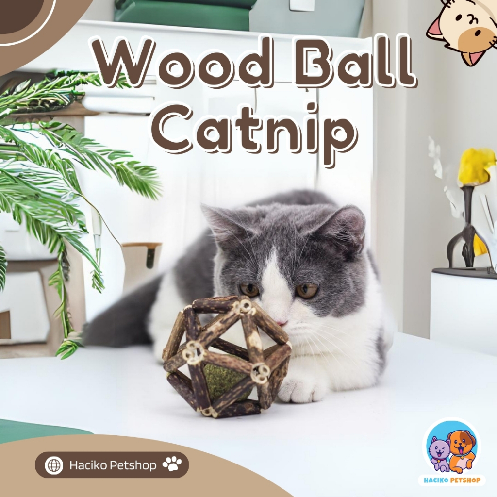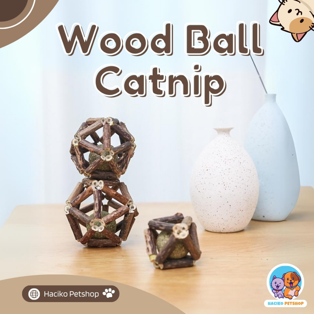 Catnip Kucing Ball Wood Mainan Interaktif Tahan Gigitan Halus Membersihkan Mulut Dan Bulu Yang Masuk Ke Perut