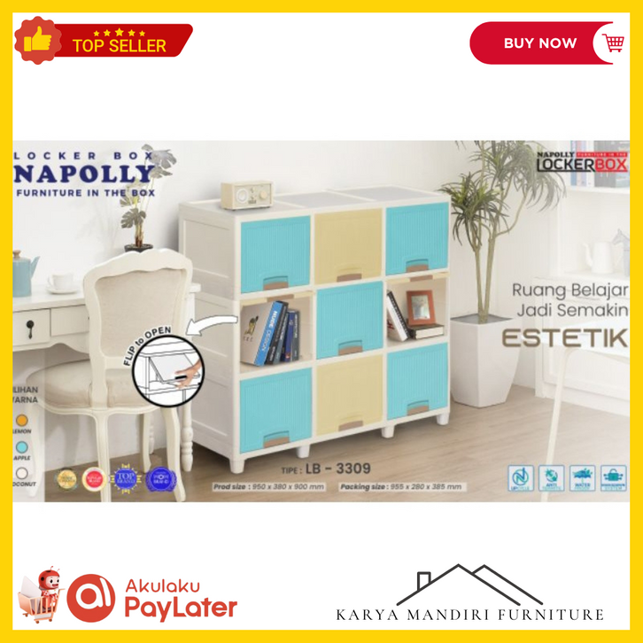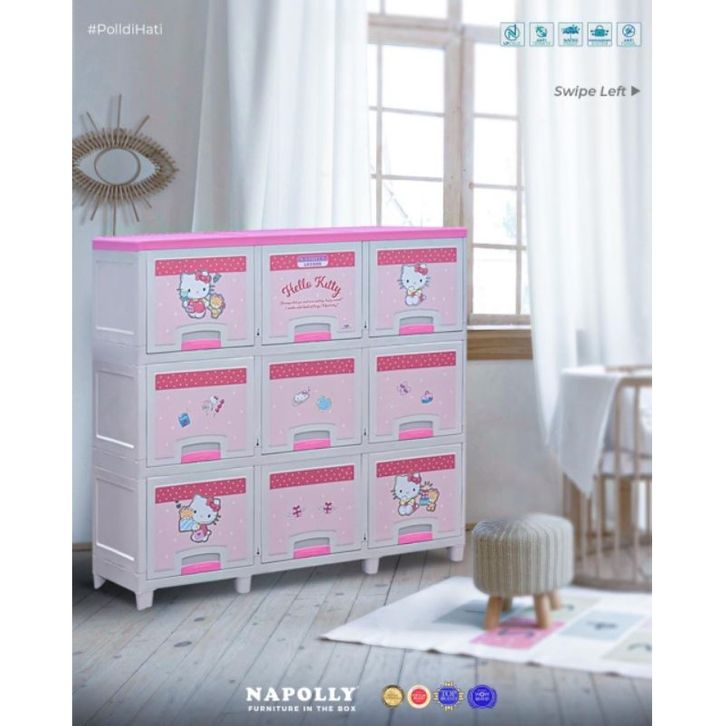 LEMARI PAKAIAN NAPOLLY 3309 9 PINTU 3 SUSUN MOTIF APEL ORIGINAL FREE ONGKIR