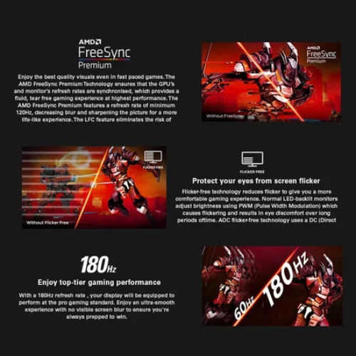 AOC MONITOR LED 34 27 25 24 INCH ADAPTIVE FREE SYNC PANEL VA IPS FHD HDR 1MS 0.5MS 144HZ SPEAKER USB-C 3-SIDED FRAMELESS