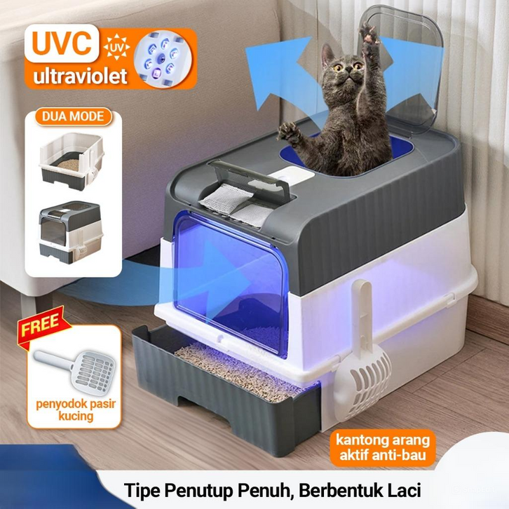TEMPAT BAK PASIR KUCING TEMPAT PUP TOILET KUCING STERILISASI UV ME CAT LITTER BOX TERMURAH TERLARIS