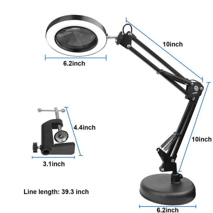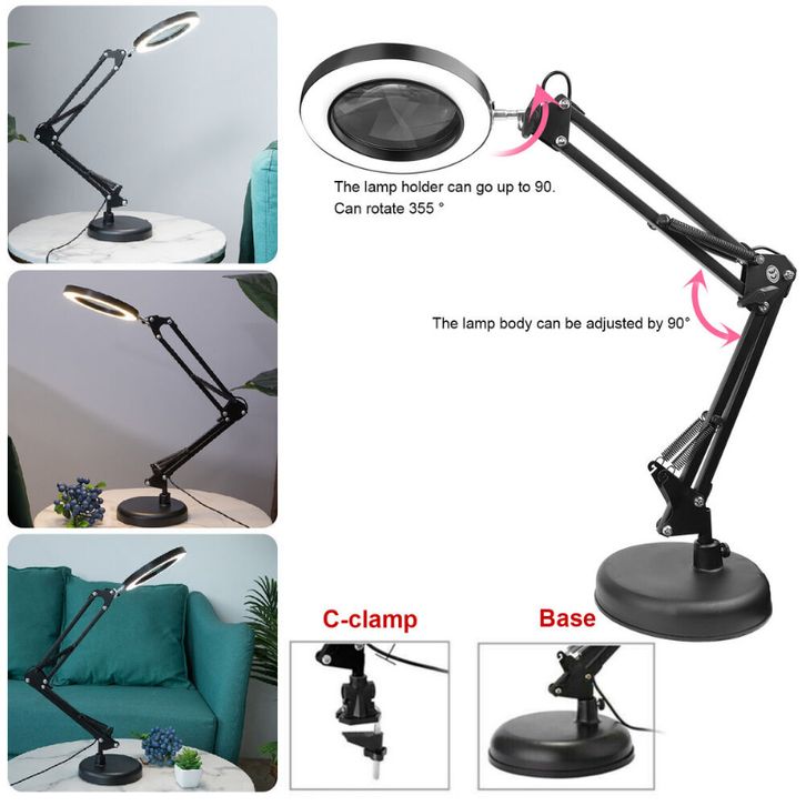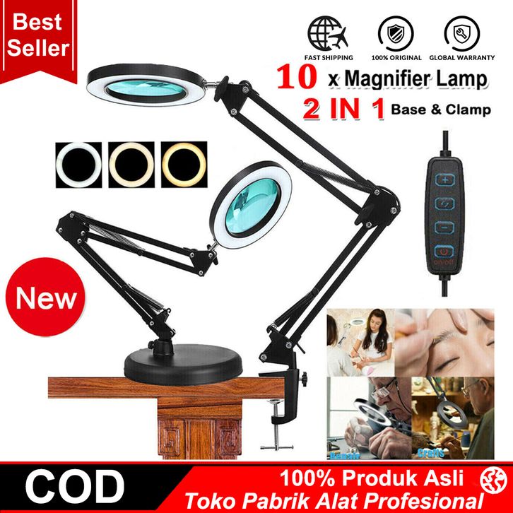 Lipat Profesional 10X Kaca Pembesar Lampu Meja Kaca Pembesar Lampu LED Lampu Baca dengan Tiga Mode Peredupan USB Power S