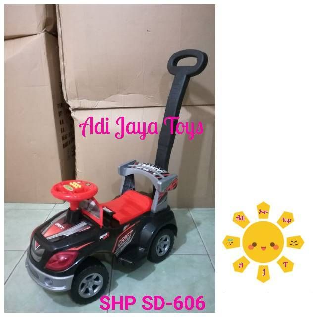 Mainan Mobil Sedan Anak – Dorong & Dikendarai, Musik & Lampu, Setir & Bagasi, Bahan Plastik Tebal & Kokoh