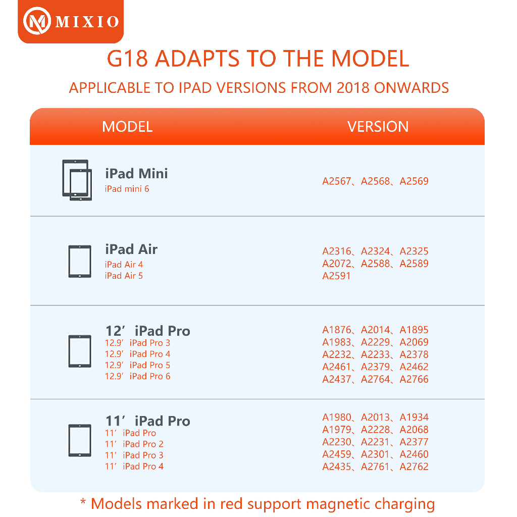 MIXIO G18 2023 STYLUS PENCIL FOR IPAD AIR 5 MINI6 GEN10 PRO11 PRO 12.9 WITH WIRELESS MAGNET CHARGE