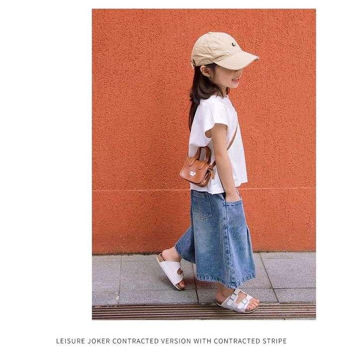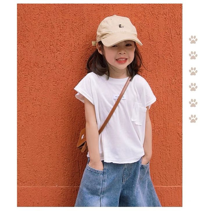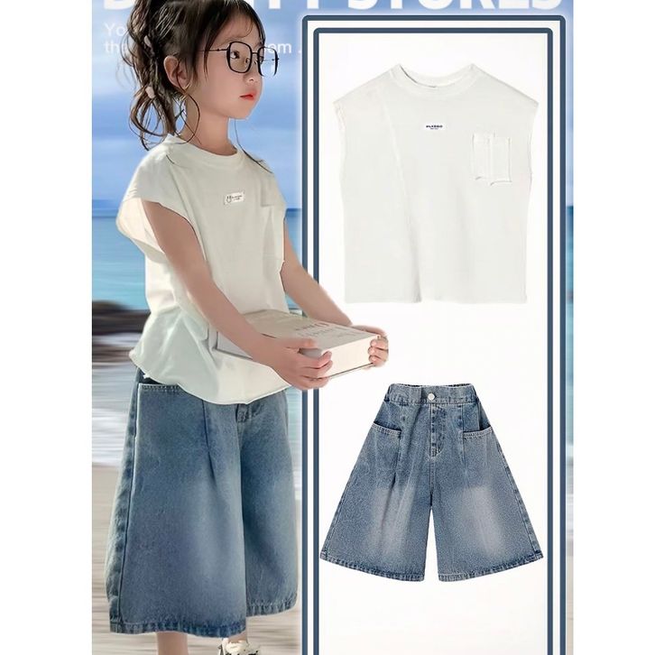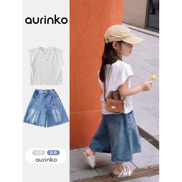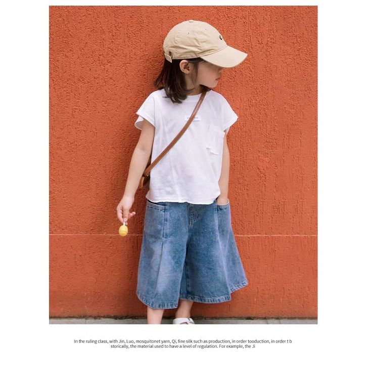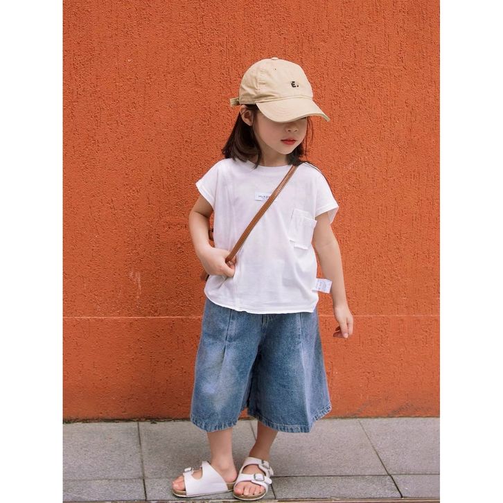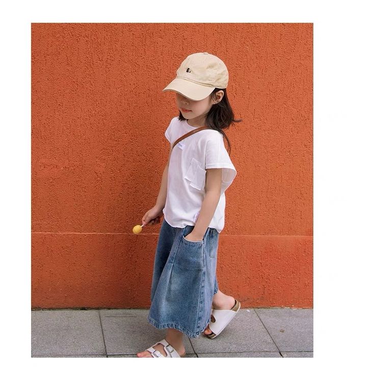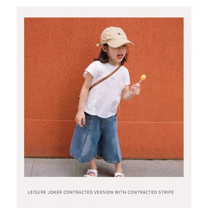 [Star] Setelan Anak Perempuan Umur 3-8 Tahun Baju Oneset Kaos Anak Motif Polos Model Lengan Pendek Dan Celana Jeans Panj