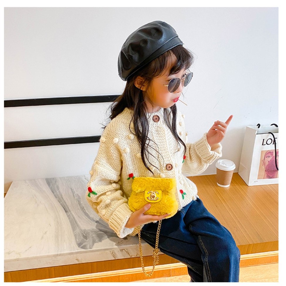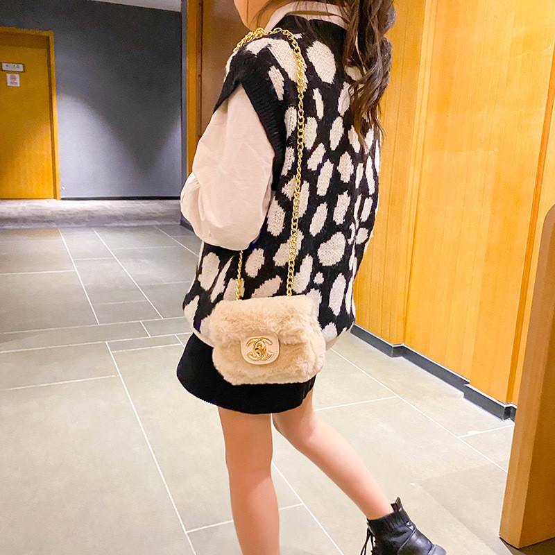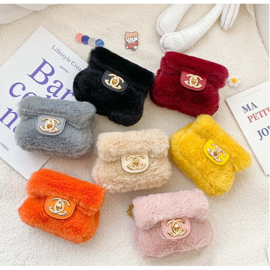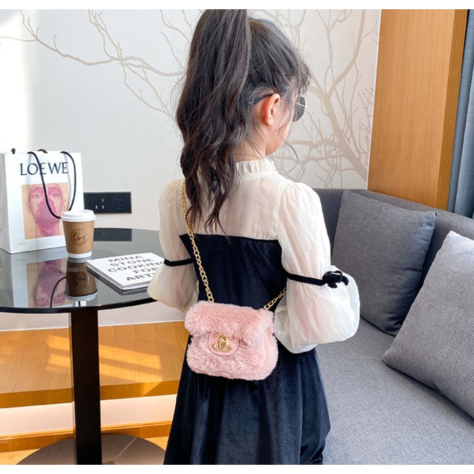 TAS18-TAS SELEMPANG ANAK PEREMPUAN FASHION BULU2 FUR CHANELY