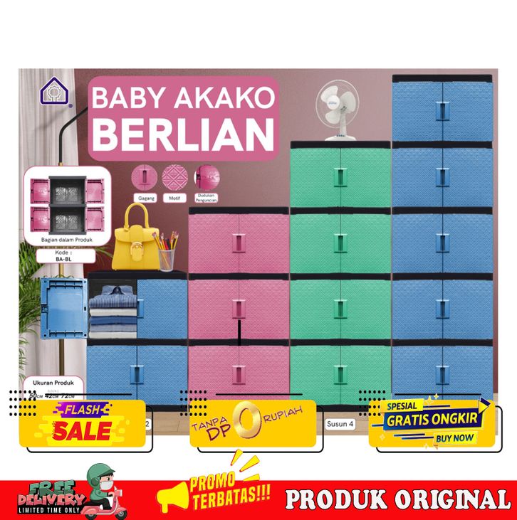 PROMO!!! AKAKO - LEMARI PAKAIAN ANAK PLASTIK AKAKO BABY "BERLIAN" SUSUN 2 3 4 DAN 5 /KODE: BA-BL