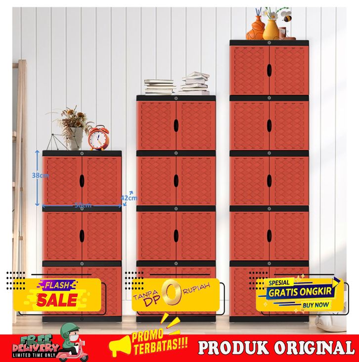 PROMO!!! LEMARI KABINET PLASTIK LEMARI PLASTIK FULL KUNCI LEMARI PAKAIAN 3/4/5 SUSUN - SLG MERAH