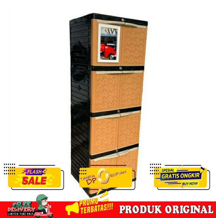 PROMO!!!LEMARI PLASTIK AQUOSE MINI SUSUN 4 DAN 3 KACA + KUNCI / LEMARI PAKAIAN