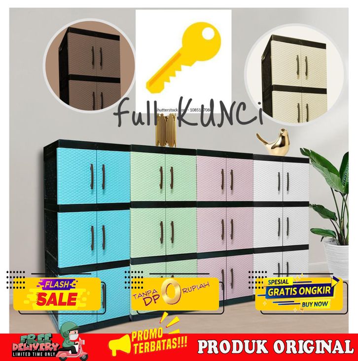 PROMO!!!LEMARI PLASTIK SUSUN 3 ROTAN LEMARI BAJU MINI SUSUN 3 GALAXY FULL KUNCI