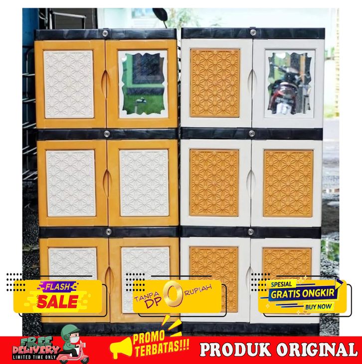 PROMO!!! LEMARI PLASTIK 3 SUSUN KACA / LEMARI PLASTIK 3 SUSUN