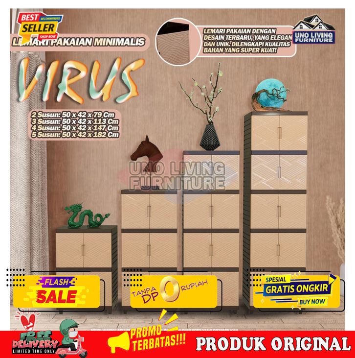 PROMO!!! LEMARI PAKAIAN PLASTIK 4 SUSUN LEMARI KINGDOM VIRUS 4 SUSUN