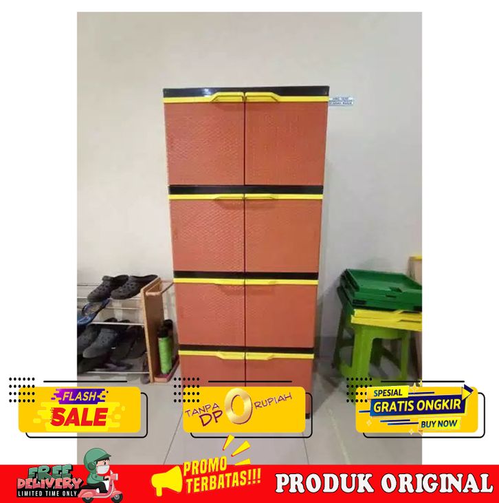 PROMO LEMARI PLASTIK MOTIF ROTAN SUSUN 4 BESAR (JUMBO BUKAN MINI) MUAT BANYAK