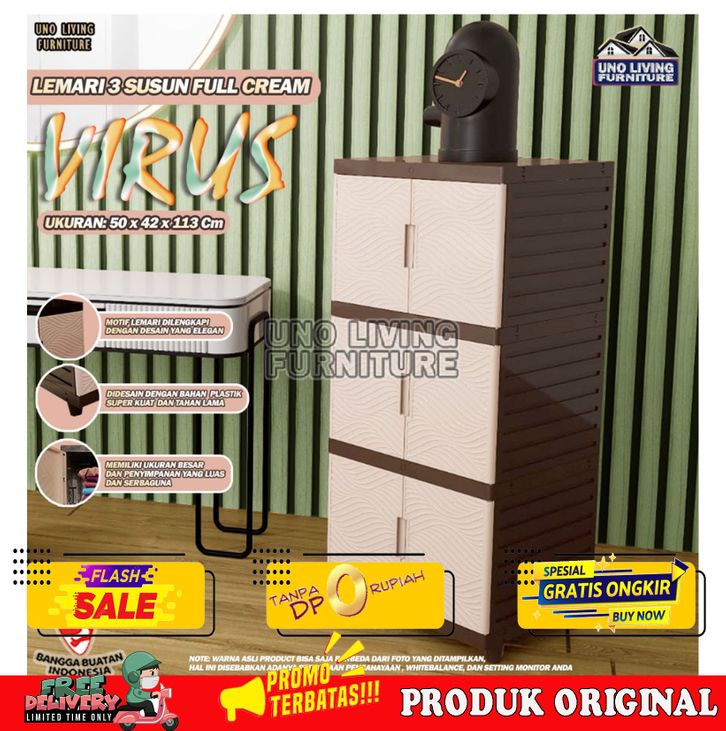 PROMO!!! LEMARI PAKAIAN KINGDOM VIRUS 4 SUSUN LEMARI PINTU KABINET LEMARI PLASTIK MINIMALIS - FULL CREAM