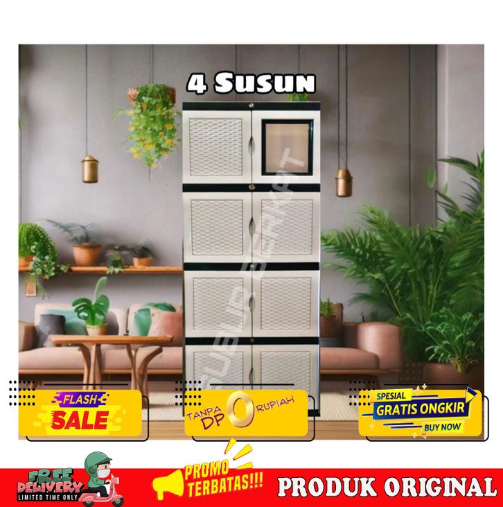 PROMO!!! LEMARI PLASTIK LEMARI PAKAIAN LEMARI SUSUN LEMARI BAJU KACA KUNCI !!!