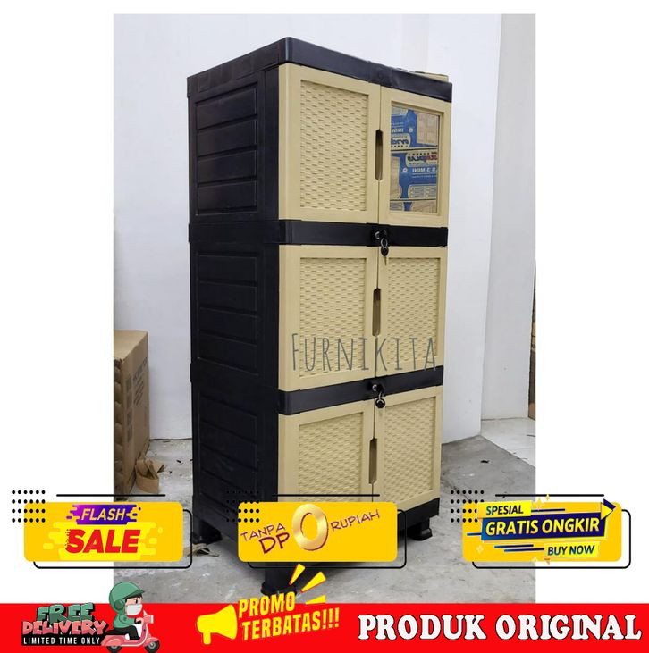 PROMO!!! LEMARI PAKAIAN PLASTIK ROTAN DIAMOND MINI SUSUN 3 KUNCI KACA