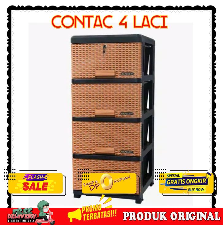 PROMO!!! LEMARI SUSUN PLASTIK NAPOLLY CONTAC K1 JATI / DRAWER 4 LACI SERBAGUNA