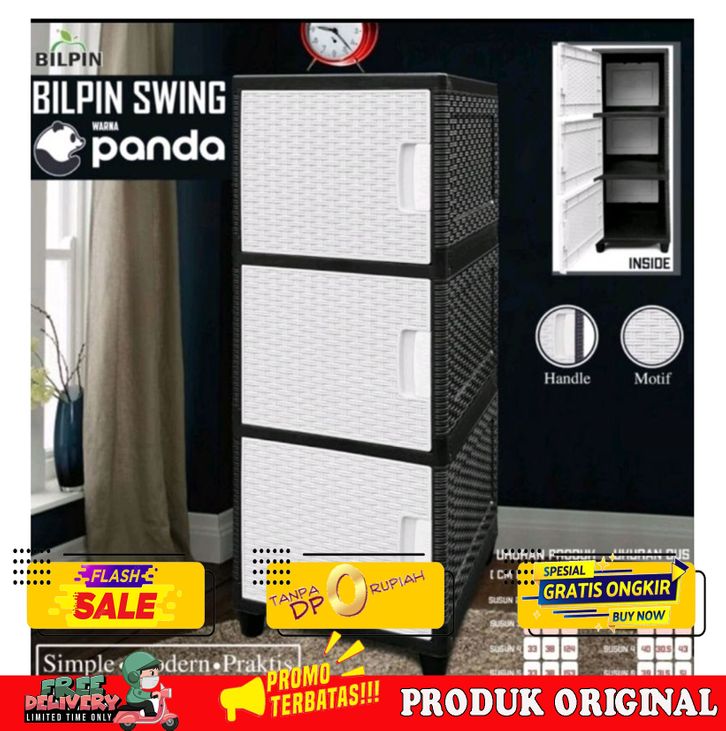 PROMO!!! LEMARI PLASTIK AKAKO SWING SUSUN 3 ROTAN SERBAGUNA