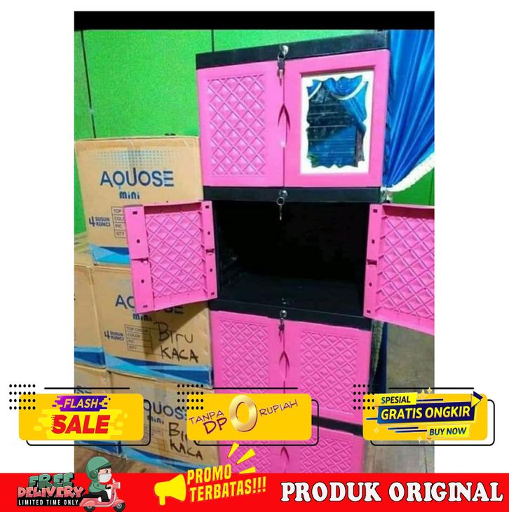 PROMO LEMARI PLASTIK MINI POLOS KACA SUSUN 4