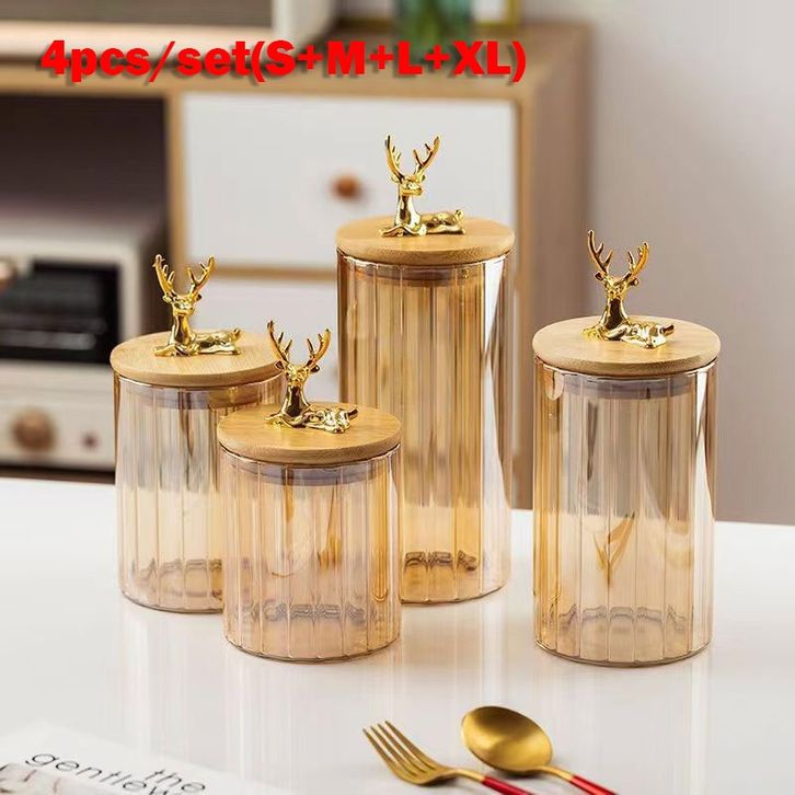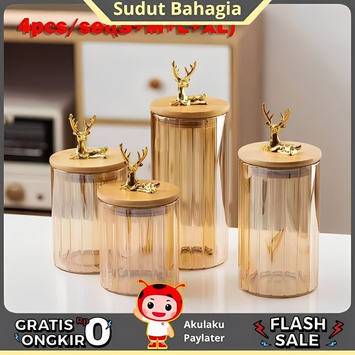 Toples Premium Kaca Kotak Penyimpanan Makanan 4pcs/set Serbaguna Rapat Kedap Udara Dan Mewah