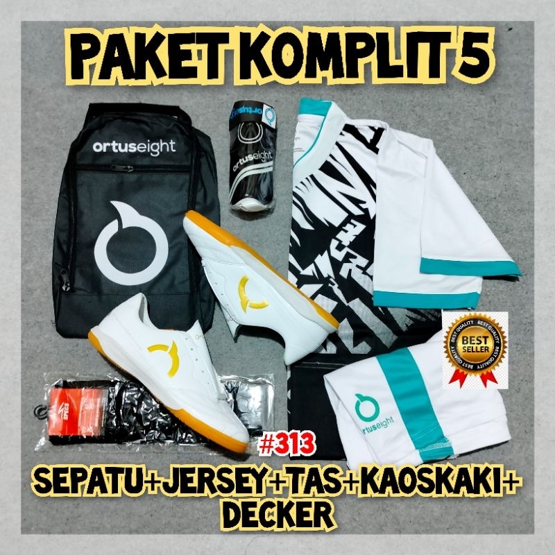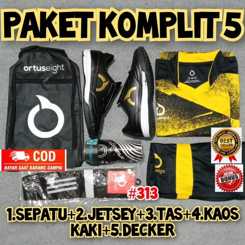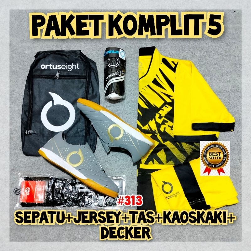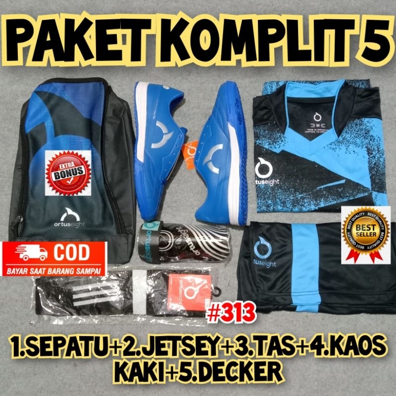 PAKET KOMPLIT 5 SEPATU OLAHRAGA FUTSAL+KAOSKAKI+SETELAN+DECKER+TASJINJING