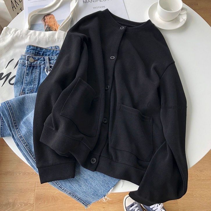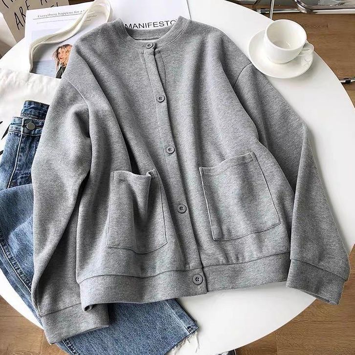 baju cewek - outer - cardigan - Lamina Outer Plain Button Pocket Premium Outerwear Cardy Fleece Tebal Remaja Wanita