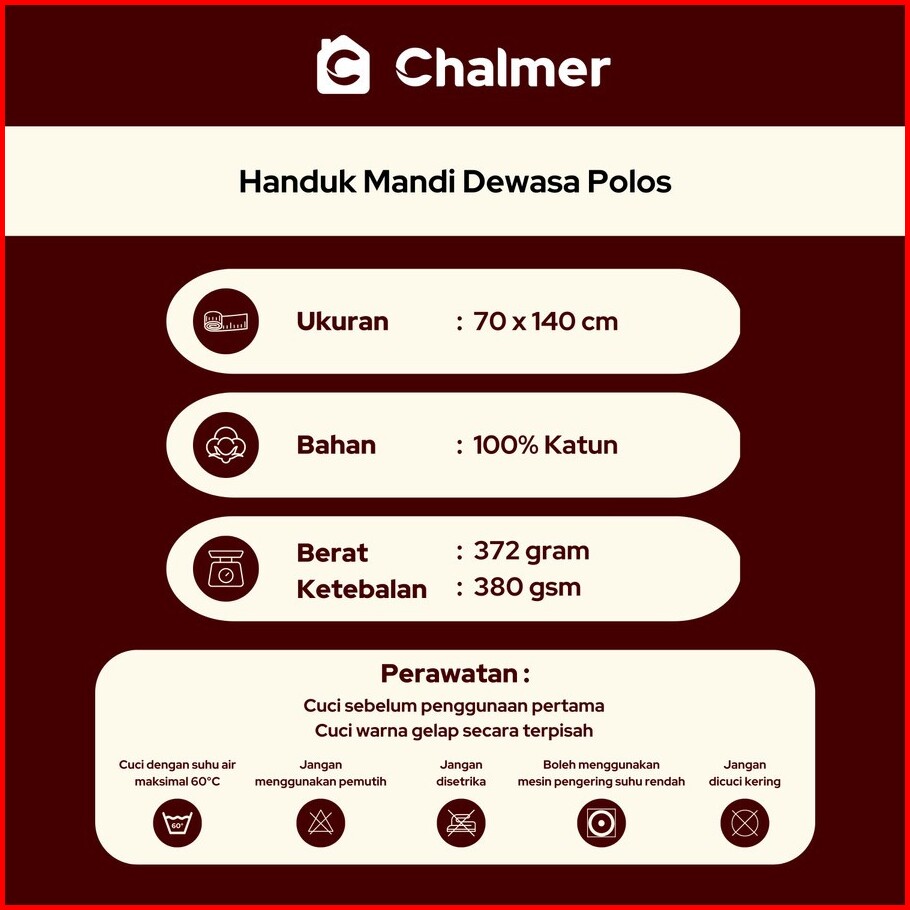 Handuk Chalmer 70 X 140 Handuk Mandi Dewasa Lembut Serap Air Tebal Berkualitas By Natural Terry Towel