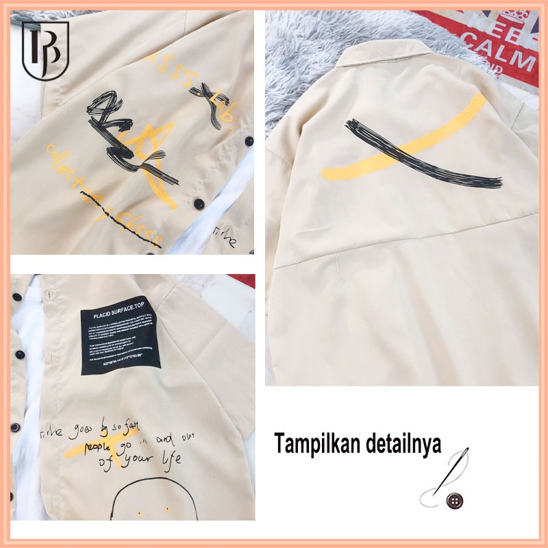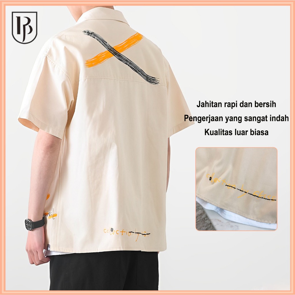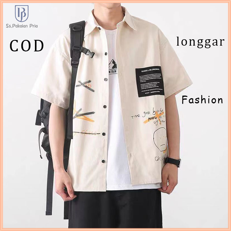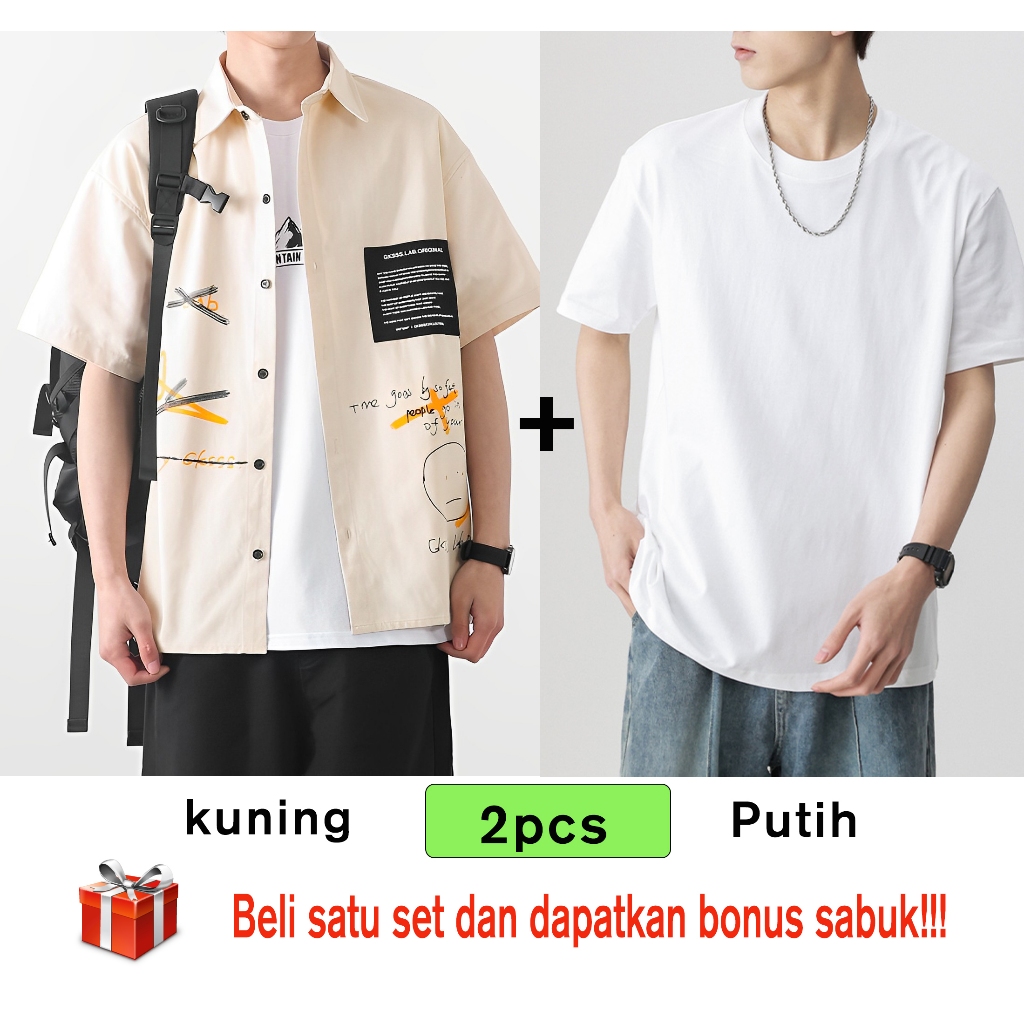 KEMEJA PRIA LENGAN PENDEK LONGGAR KEMEJA VINTAGE STANDAR KASUAL PRIA KOREAN STYLE KEMEJA OVERSIZE PRIA FASHION KUNING