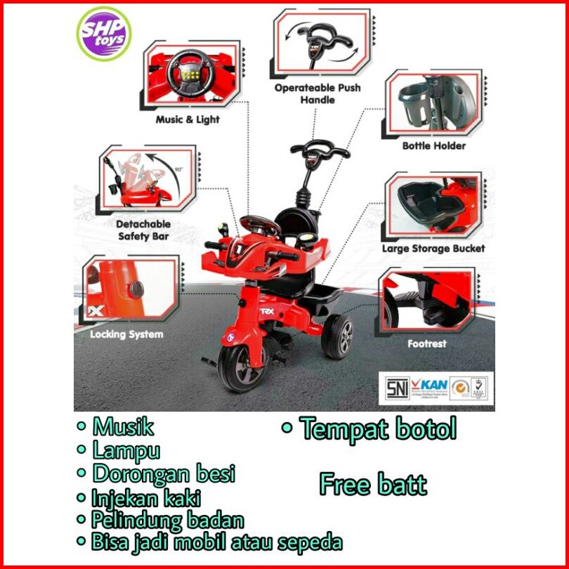 New Trx 575 Shp Mainan Sepeda Anak 1-5 Tahun Mainan Sepeda Anak Roda 3 Kemudi Stir Dan Stang