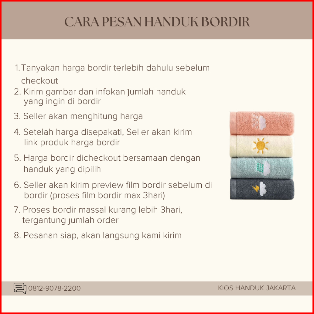 01 PINK LIST, 03 PINK BABY, 06 ORANGE SEDANG, 08 YELLOW, 11 PUPUS, 12 MELON, 13 HIJAU BABY, 14 TOSCA, 15 DKBLUE, 16 TURKIS, 17 BIRU BABY, 18 COKLAT SEDANG, 21 UNGU SEDANG, 22 UNGU MUDA, 23 CREAM, 24 ABU, 25 PUTIH, OBRAL HD BORDIR