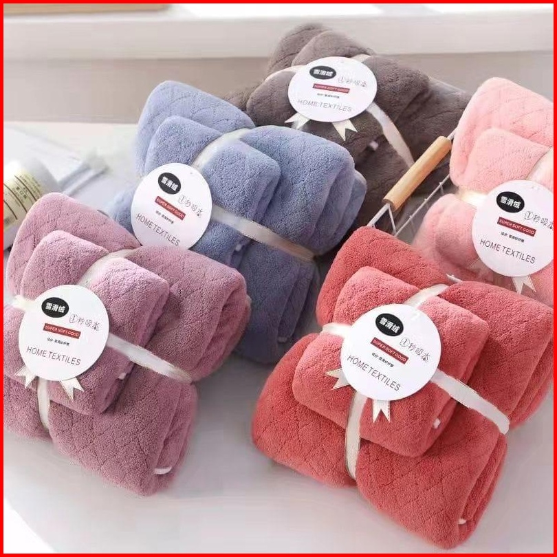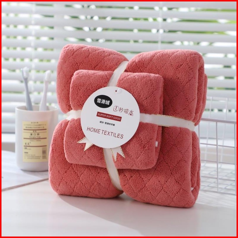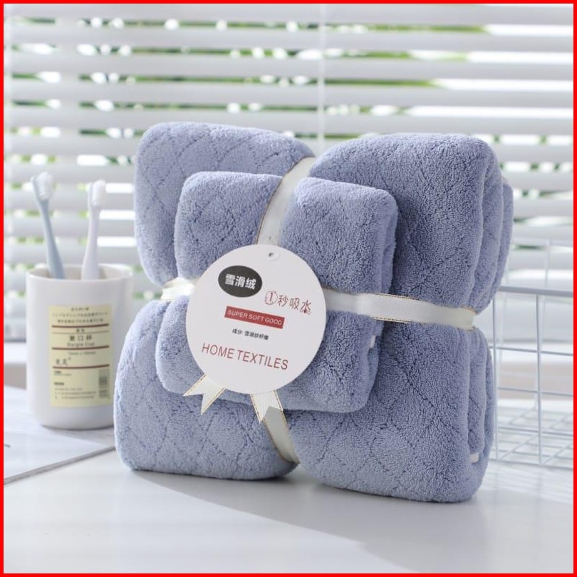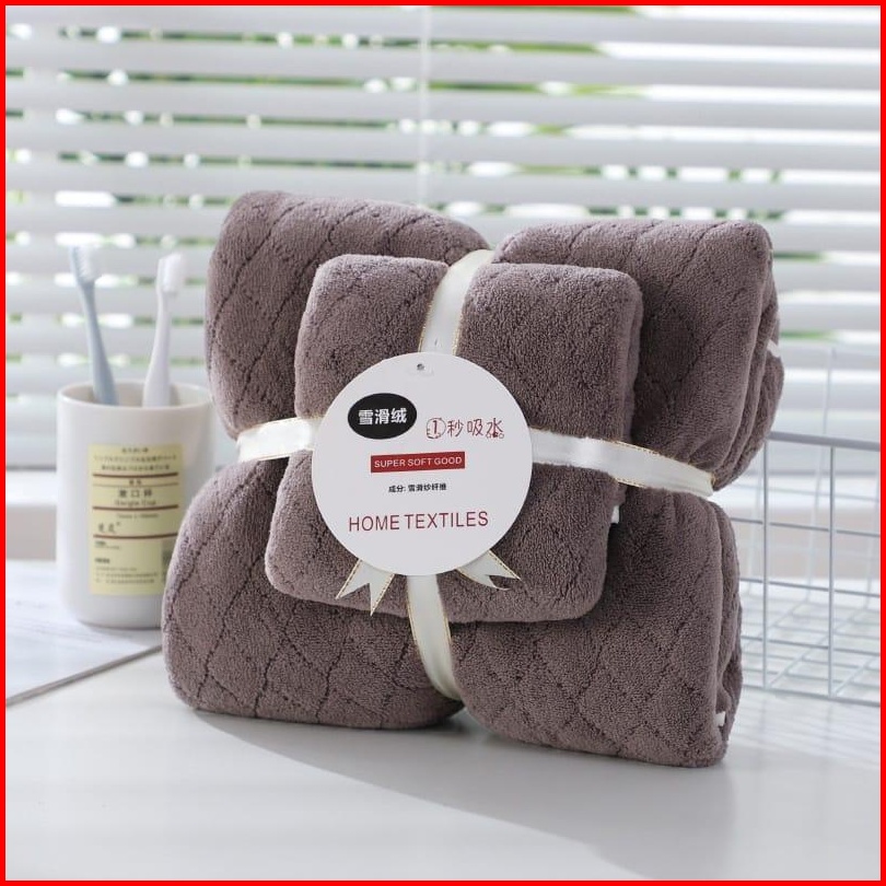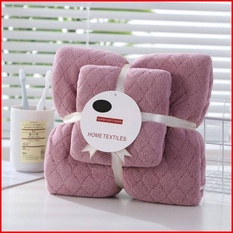 Handuk 2in1 Motif Diagonal Terbaru 1set Isi 2pcs L Happyonshop